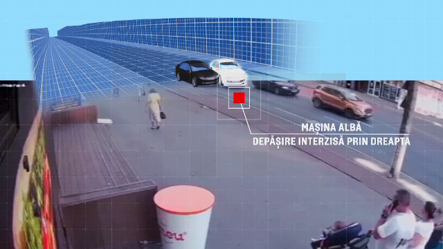 Autoturismul de culoare albă - condus de un tânăr de 24 de ani - face o depășire interzisă prin dreapta, iar manevră îl ia prin suprindere pe șoferul de 18 ani al mașinii care vine din spate, pe prima bandă.