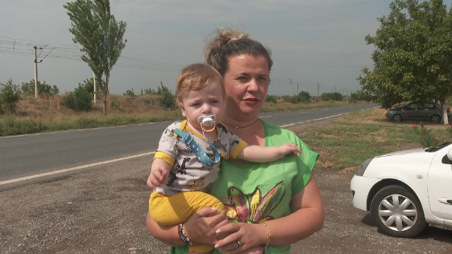 Se trage împreună cu căruciorul celui mic cât mai departe de șosea, iar soția îl urmează grăbită.