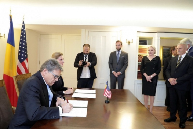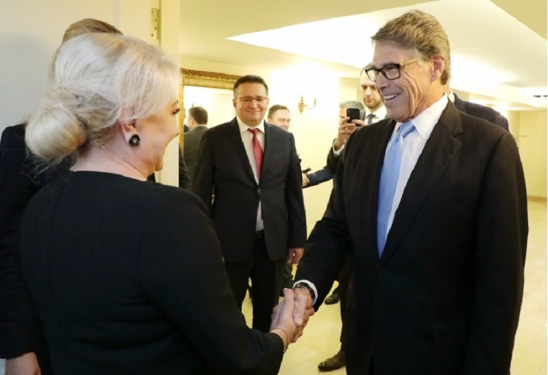 Secretarul SUA pentru Energie, Rick Perry, a anunțat, pe Twitter, semnarea unui memorandum în domeniul energiei cu România, postând fotografii în care apare alături de ministrul Ramona Mănescu, deși la întâlnire a participat și Viorica Dăncilă.