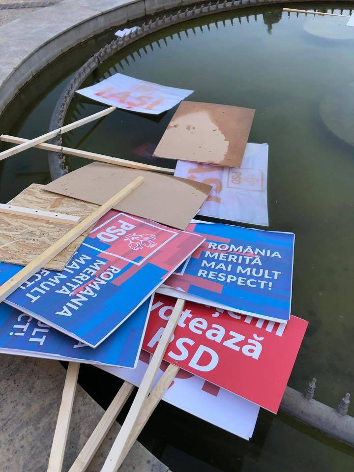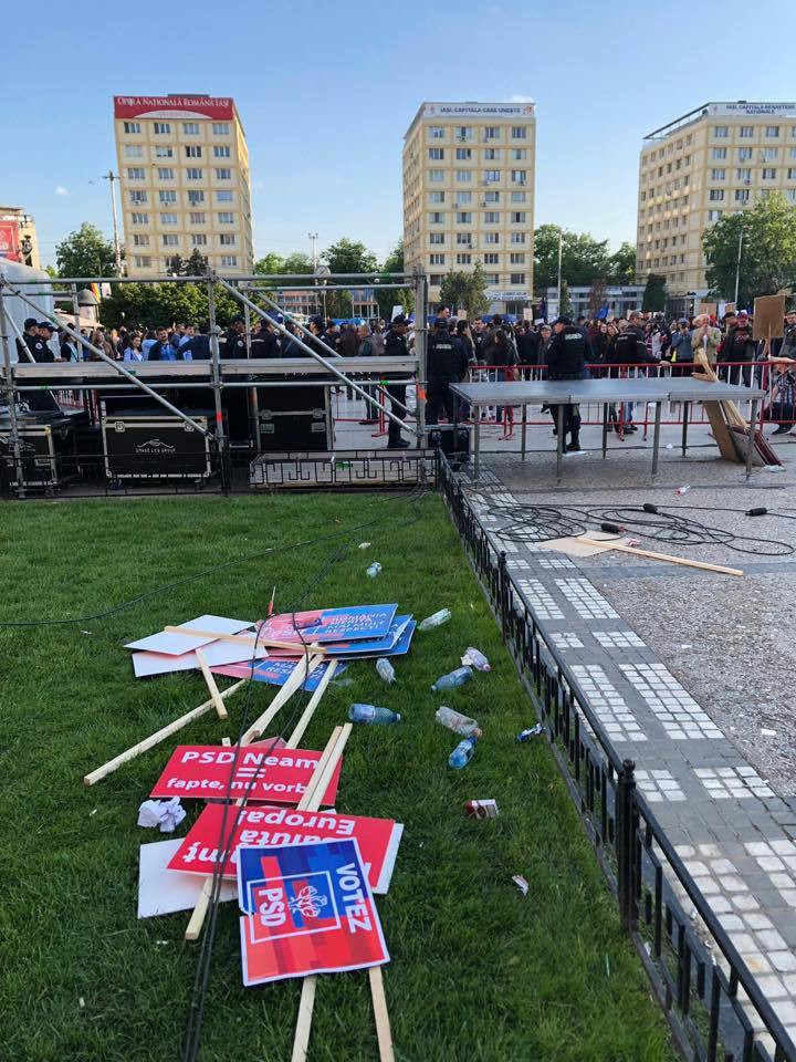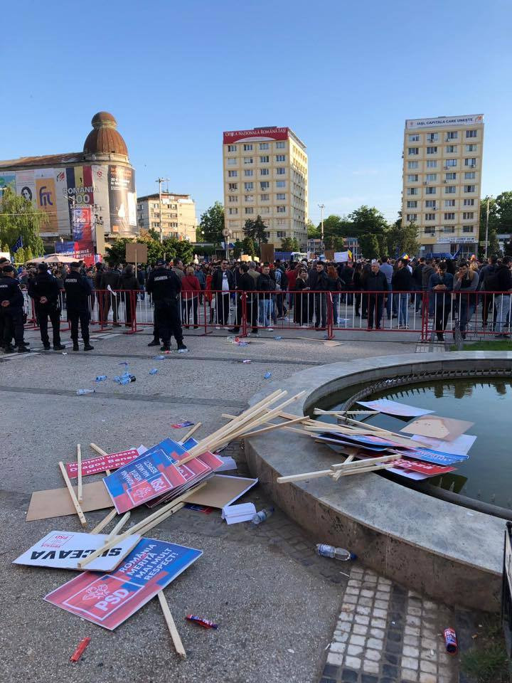 După încheierea mitingului, 6.000 de ieșeni au ocupat Piaţa Unirii, scandând lozinci împotriva lui Liviu Dragnea şi a social-democraţilor.