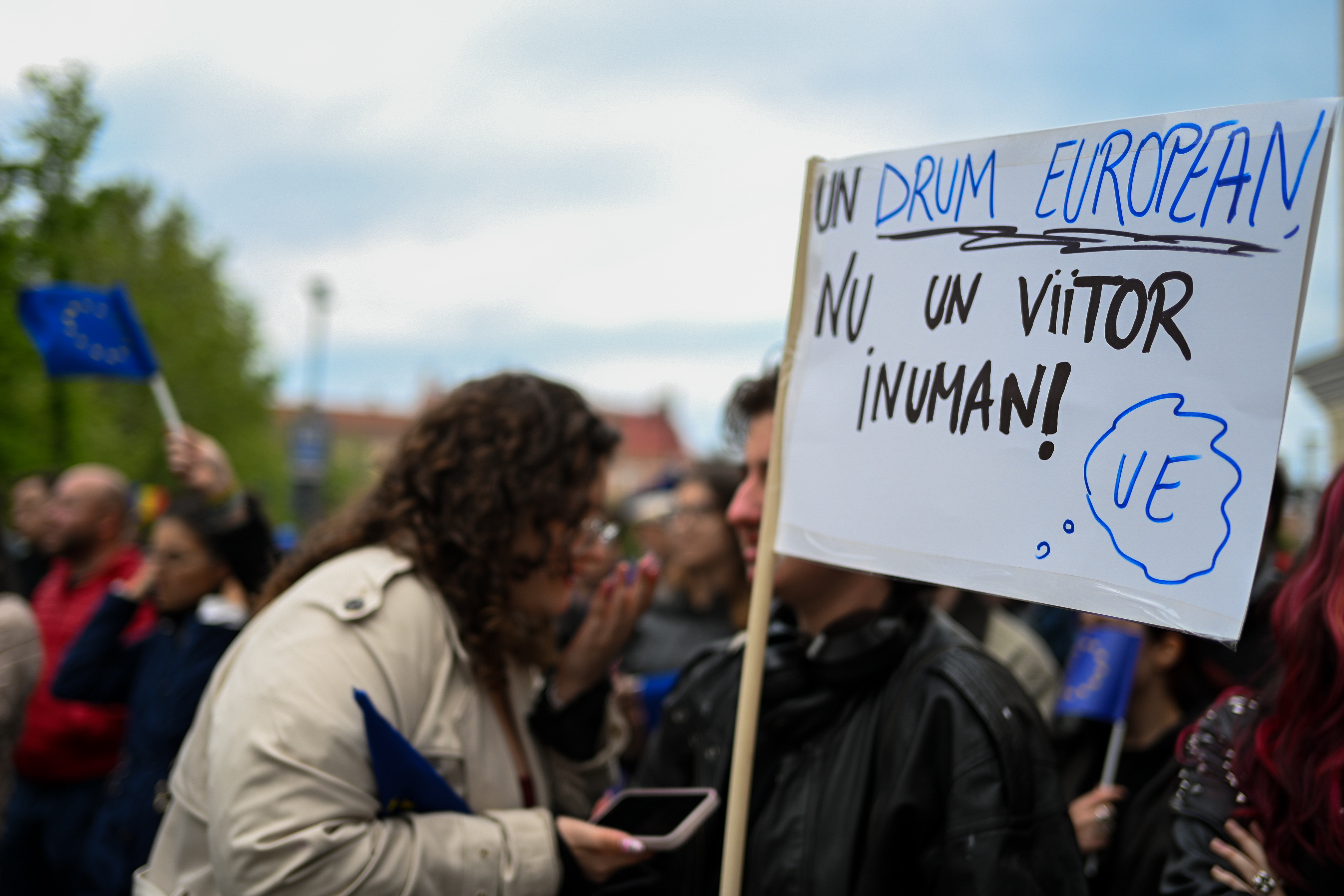 Ei au adus şi pancarte pe care au scris "Europa s-a ridicat prin unitate şi sacrificii, nu pe suveranism şi cultura fricii". "UE+Ro=Love", "România spune NU extremismului", "Moldova, regiune liberă de fascism".