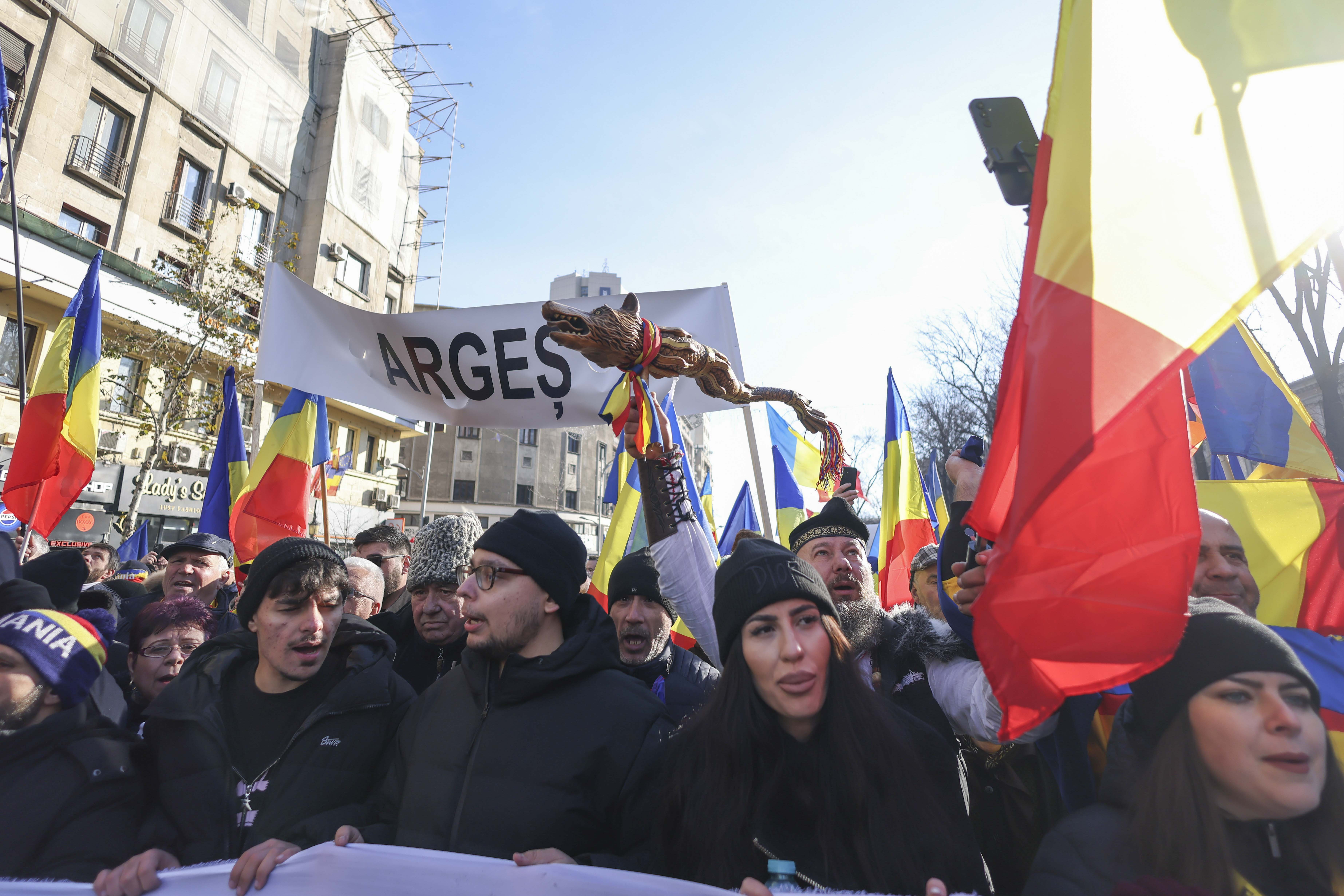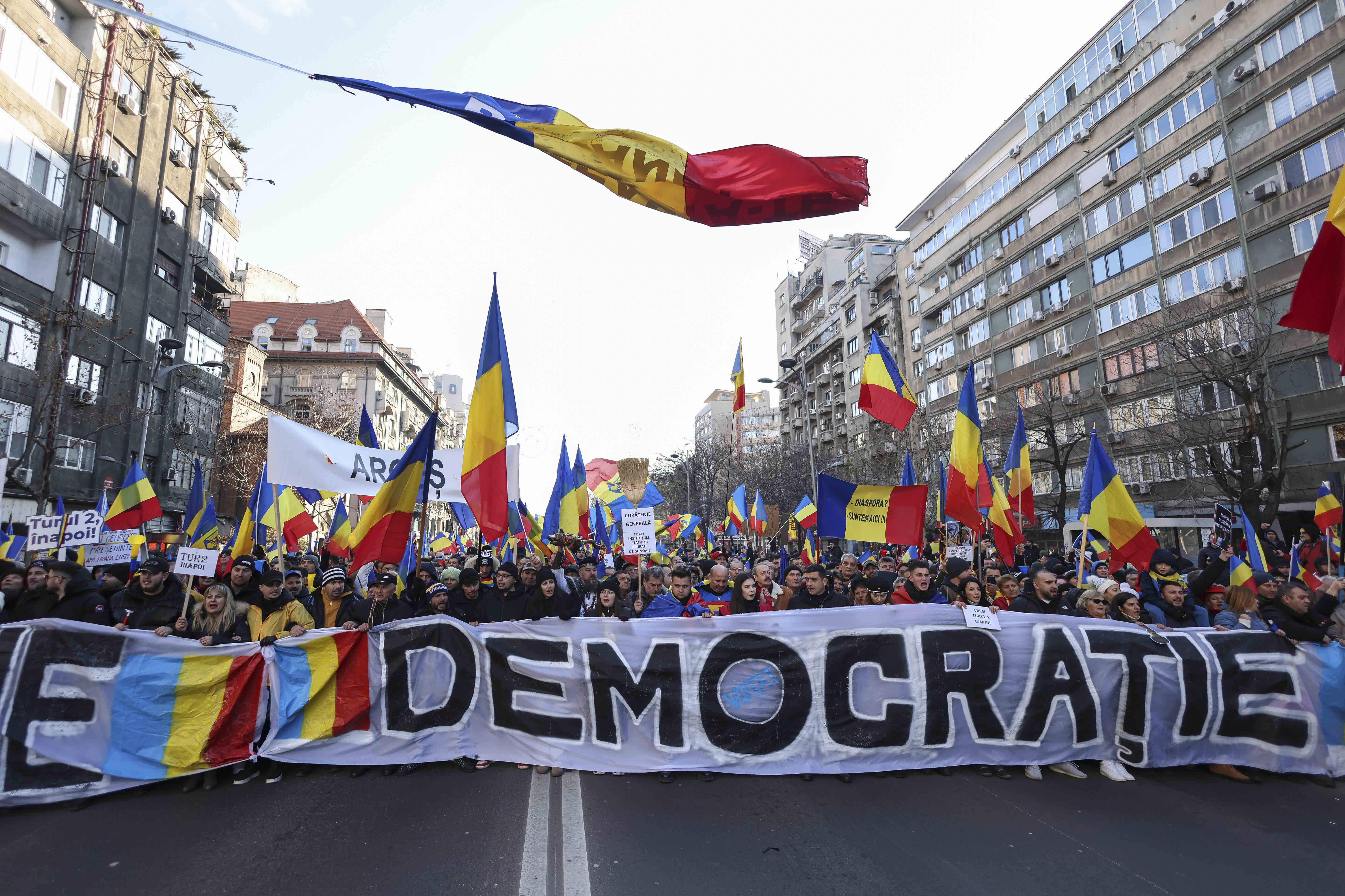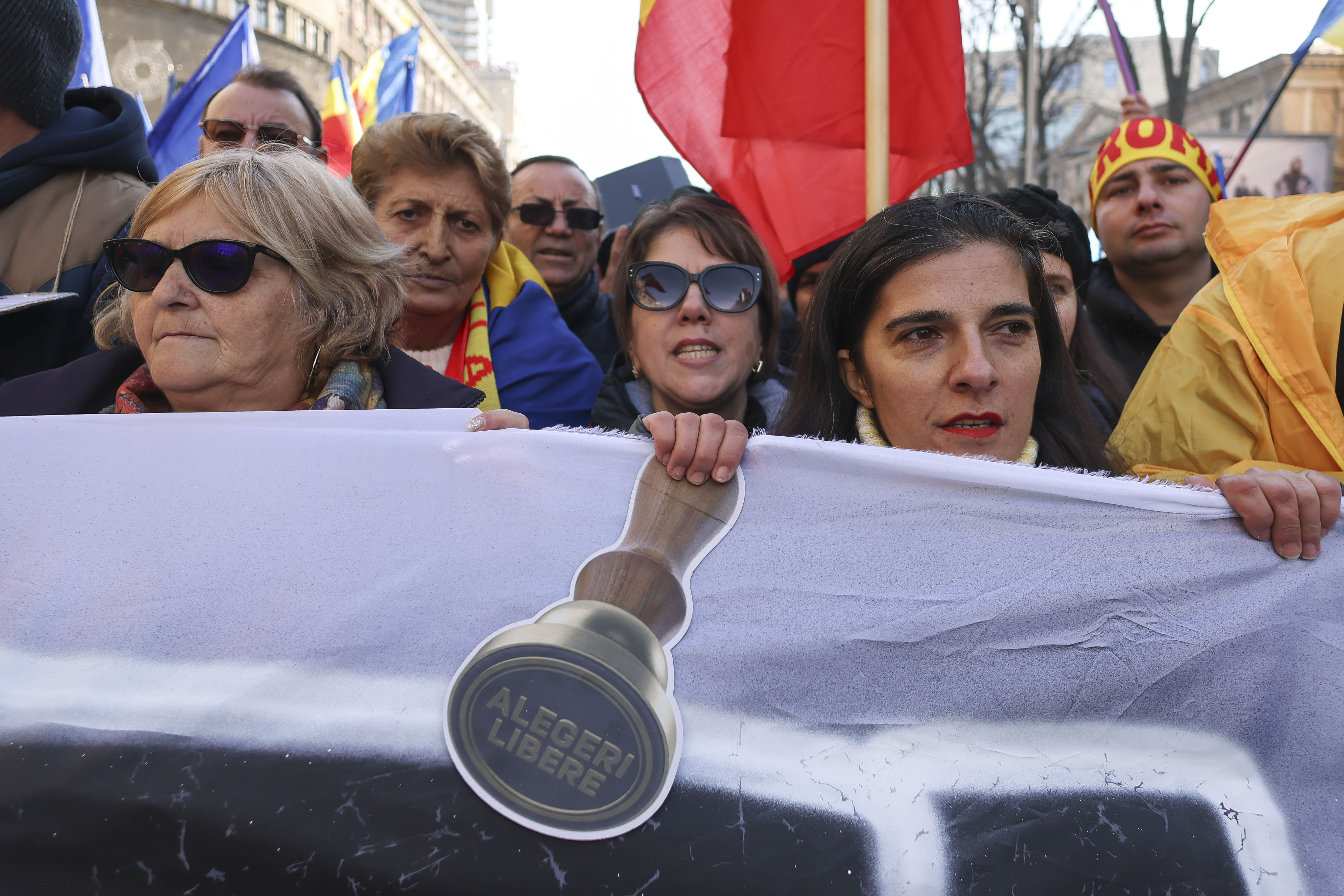 Mii de oameni protestează duminică în București pentru reluarea turului doi a alegerilor prezidențiale. Protestul a fost organizat de AUR și a început la ora 14:00 în Piața Universității.