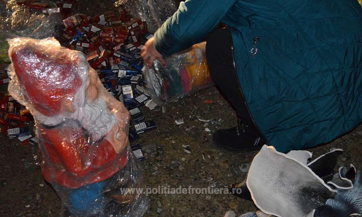 Polițiștii de frontieră din Botoșani au descoperit peste 4.100 de pachete de țigări de contrabandă ascunse în ornamente din ceramică pentru grădină.