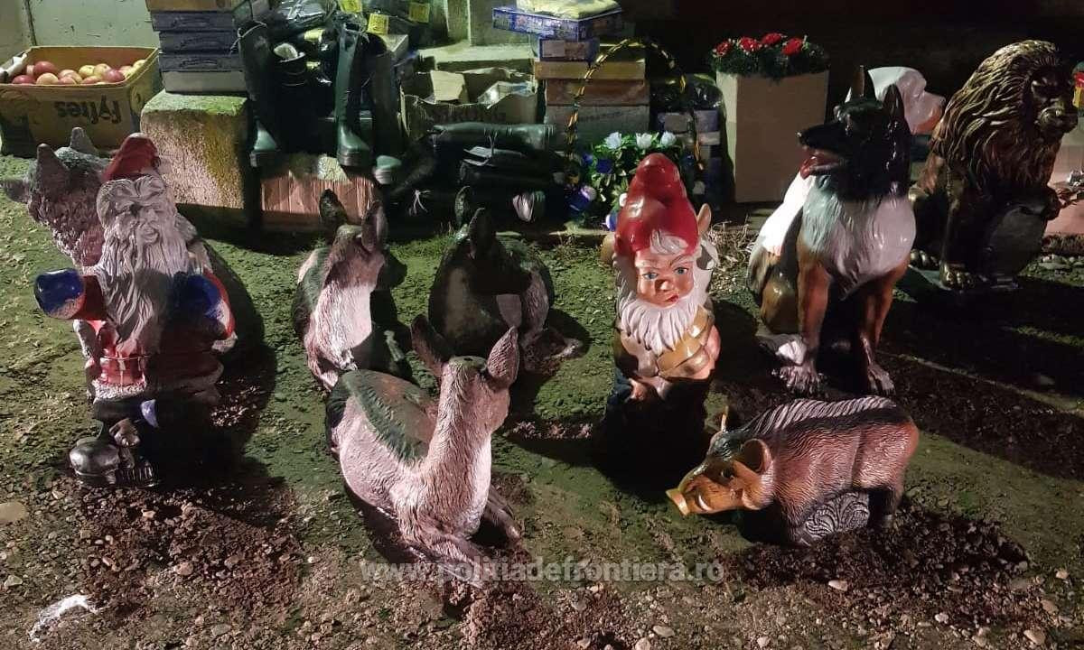 Mii de pachete de țigări de contrabandă ascunse în pitici de grădină, descoperite la Botoșani GALERIE FOTO