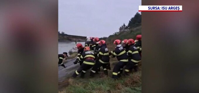Momente de panică în Argeș. O fetiță și un bătrân au fost la un pas de tragedie, după ce mașina în care erau a căzut în apă