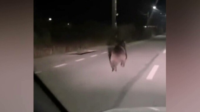 Secvențele îl surprind alergând haotic, iar la un moment dat, speriat probabil de farurile mașinii, fuge într-o zonă cu vegetație mare.