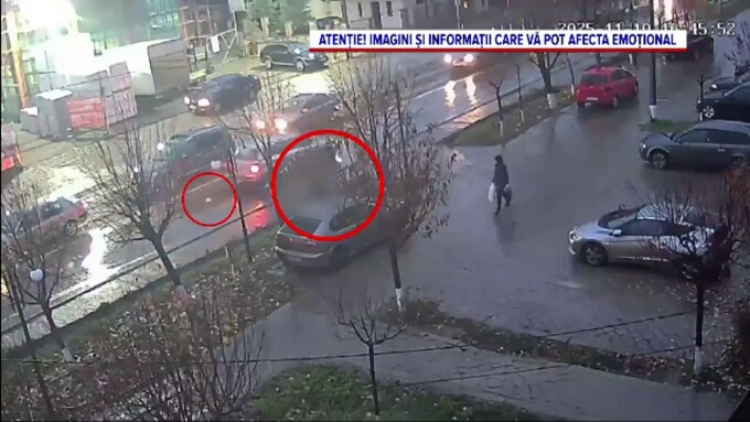 O cameră de supraveghere a surprins momentul de după impact, când fata este proiectată câțiva metri pe carosabil. Imediat, din mașină coboară șoferul, iar mai mulți martori se apropie și ei de victimă.