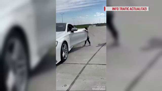 Un băieţel de cinci ani, după cum spun cei care au postat imaginile pe Facebook, conduce o mașină într-un refugiu de pe șoseaua de centură a orașului.