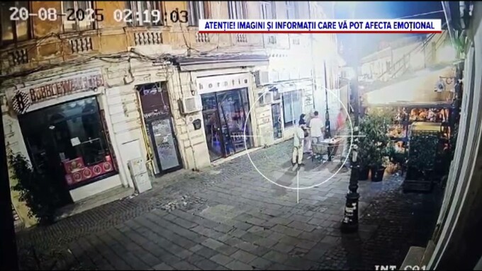În imaginile de pe camerele de supraveghere se observă suspectul care se apropie de colțul terase. Este îmbrăcat în alb, are capul acoperit cu o șapcă. Pare că se uită după cineva anume din interiorul clubului.