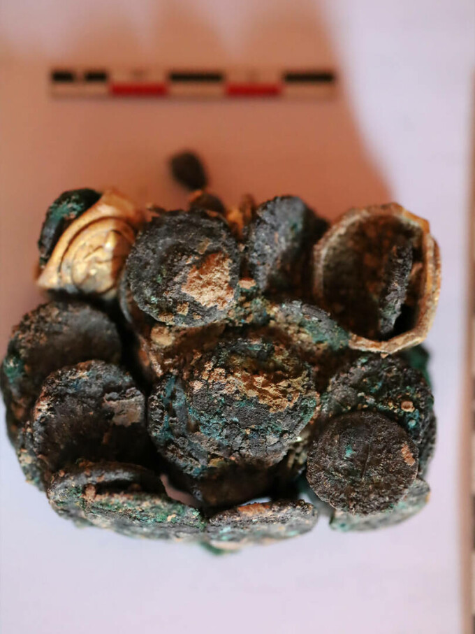 Tezaurul identificat cuprinde peste 40 de monede și mai multe podoabe din metale prețioase, obiecte care urmează să fie incluse în categoria Tezaur a patrimoniului cultural național.