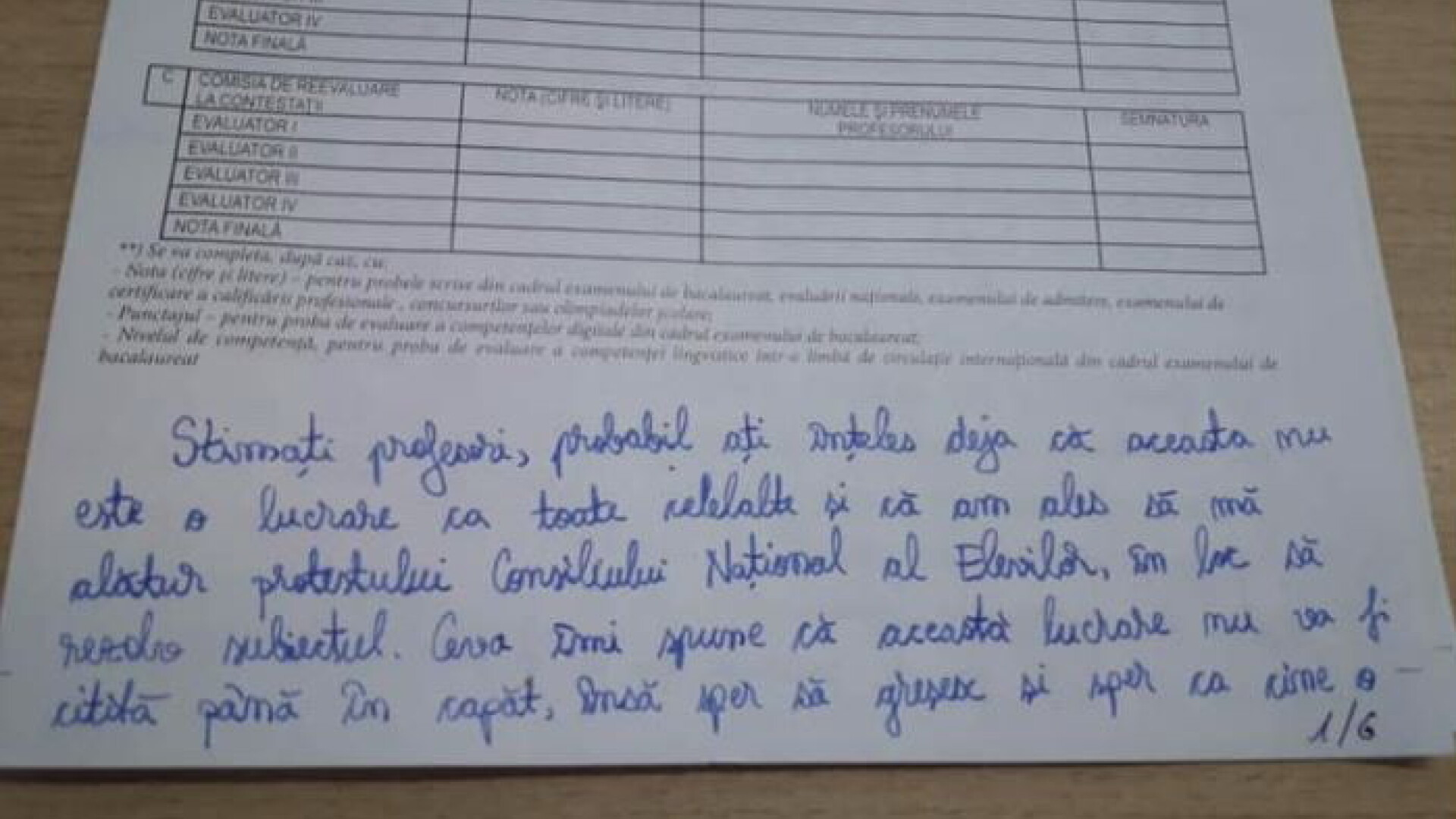 O elevă de 17 ani care a protestat la simularea examenului de bacalaureat a scris în locul rezolvării subiectelor o analiză a sistemului de învățământ pe 6 pagini.