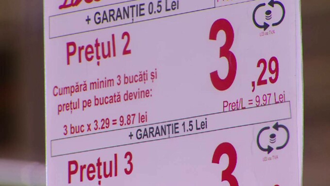 În dreptul produselor dintr-un magazin tip discount din Capitală stau agățate, la vedere, etichetele cu prețuri. Însă, inspectorii pentru protecția consumatorilor cer mai multe informaţii pe etichetă.