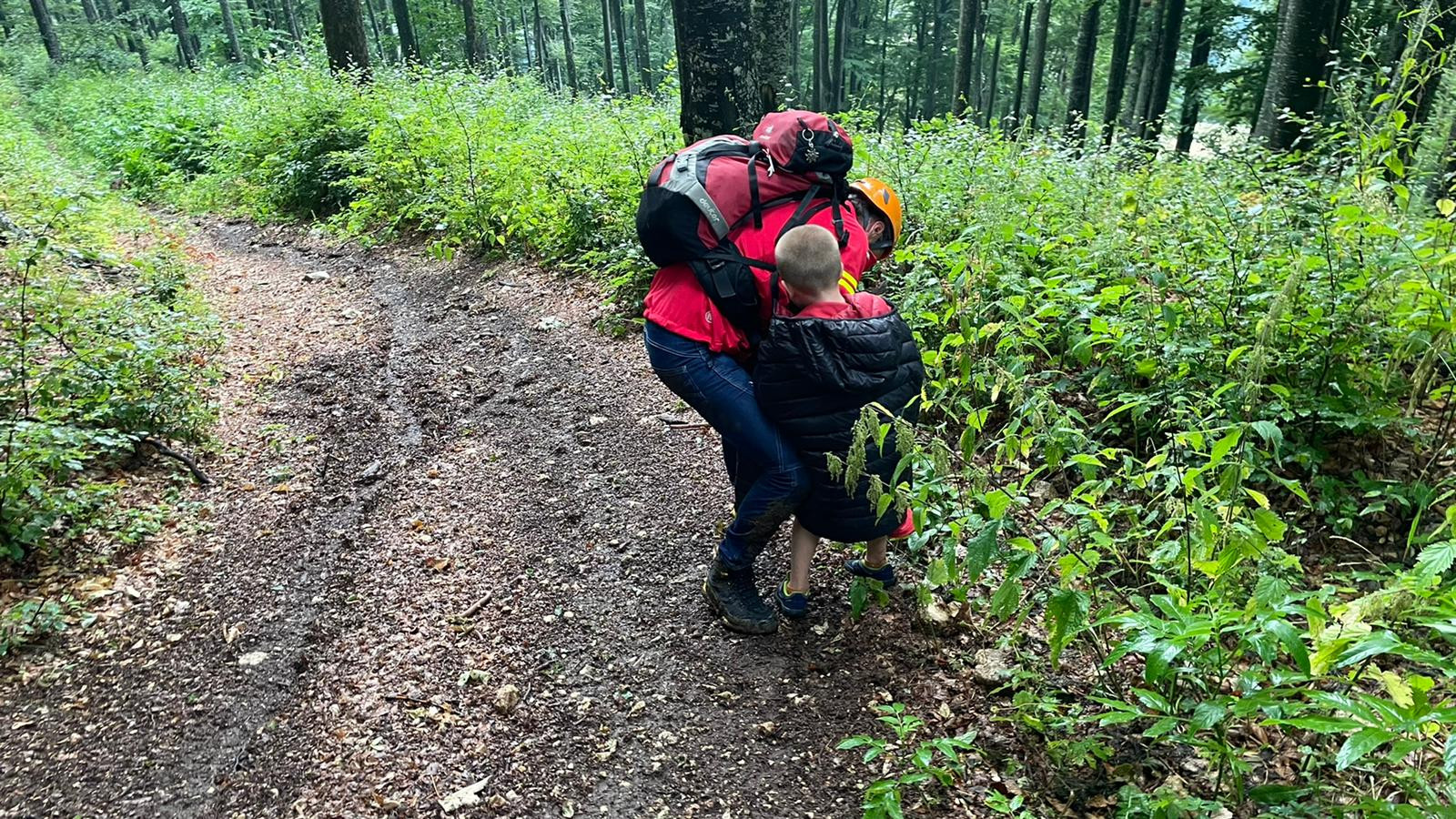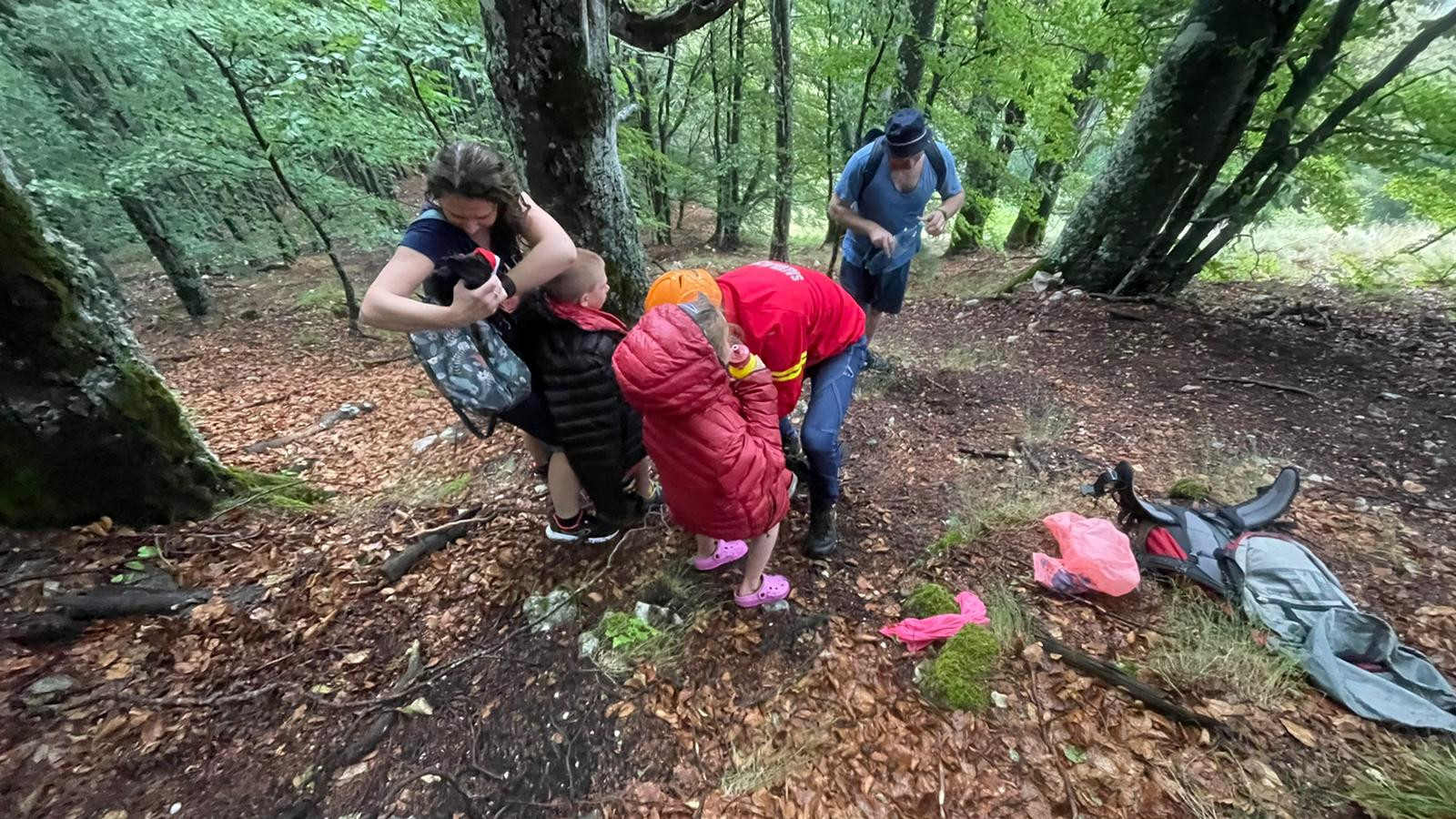 Familie cu doi copii, surprinsă pe munte de furtună, recuperată de salvamontiști. O fetiță era încălțată cu papuci | FOTO