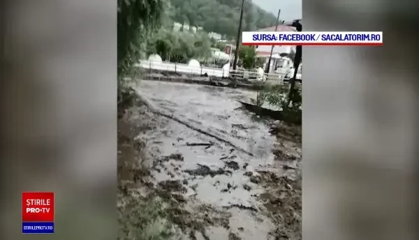 Un bărbat din București aflat în vacanță și-a găsit autoturismul distrus, acoperit de noroi, lemne și crengi.