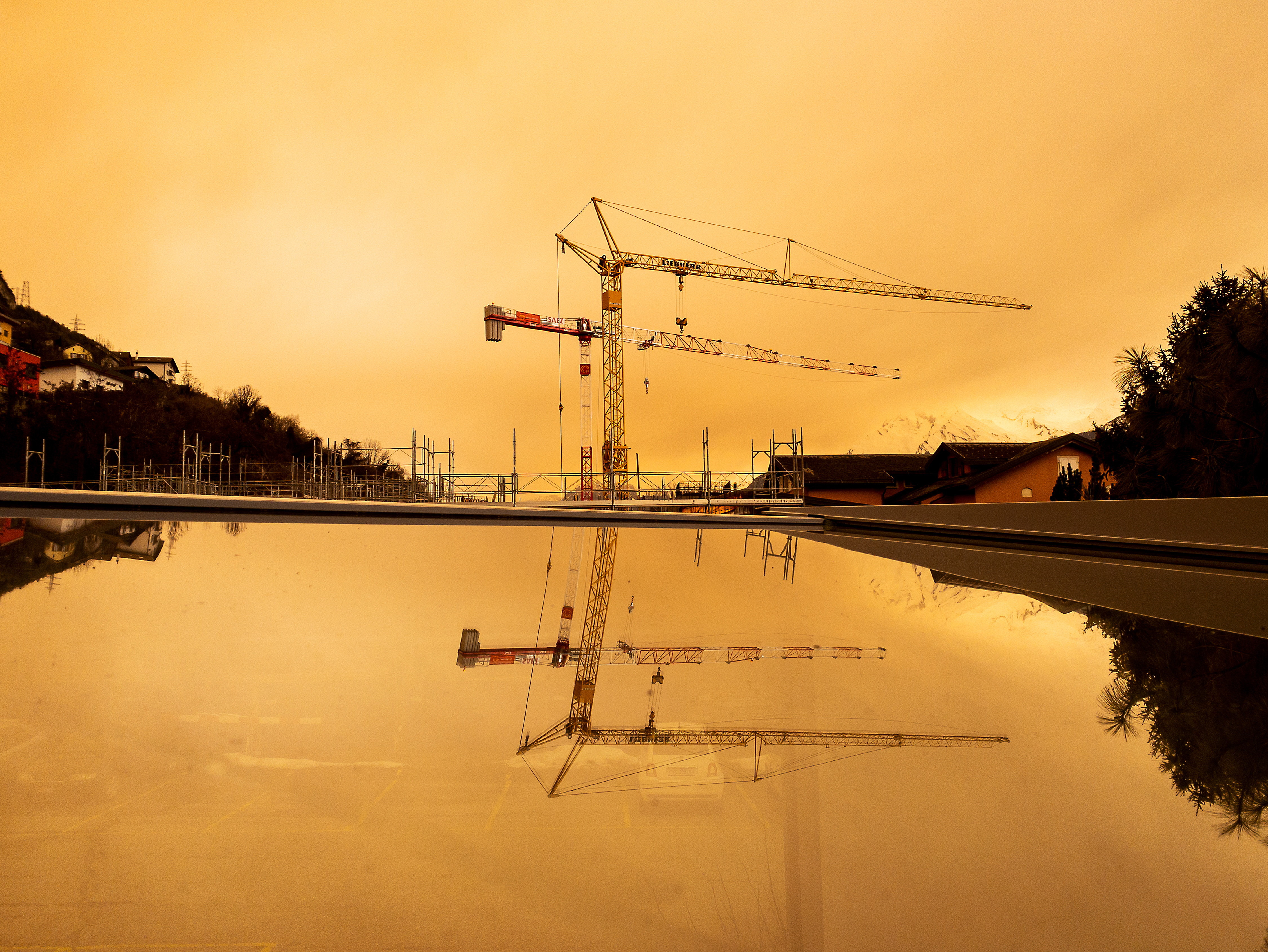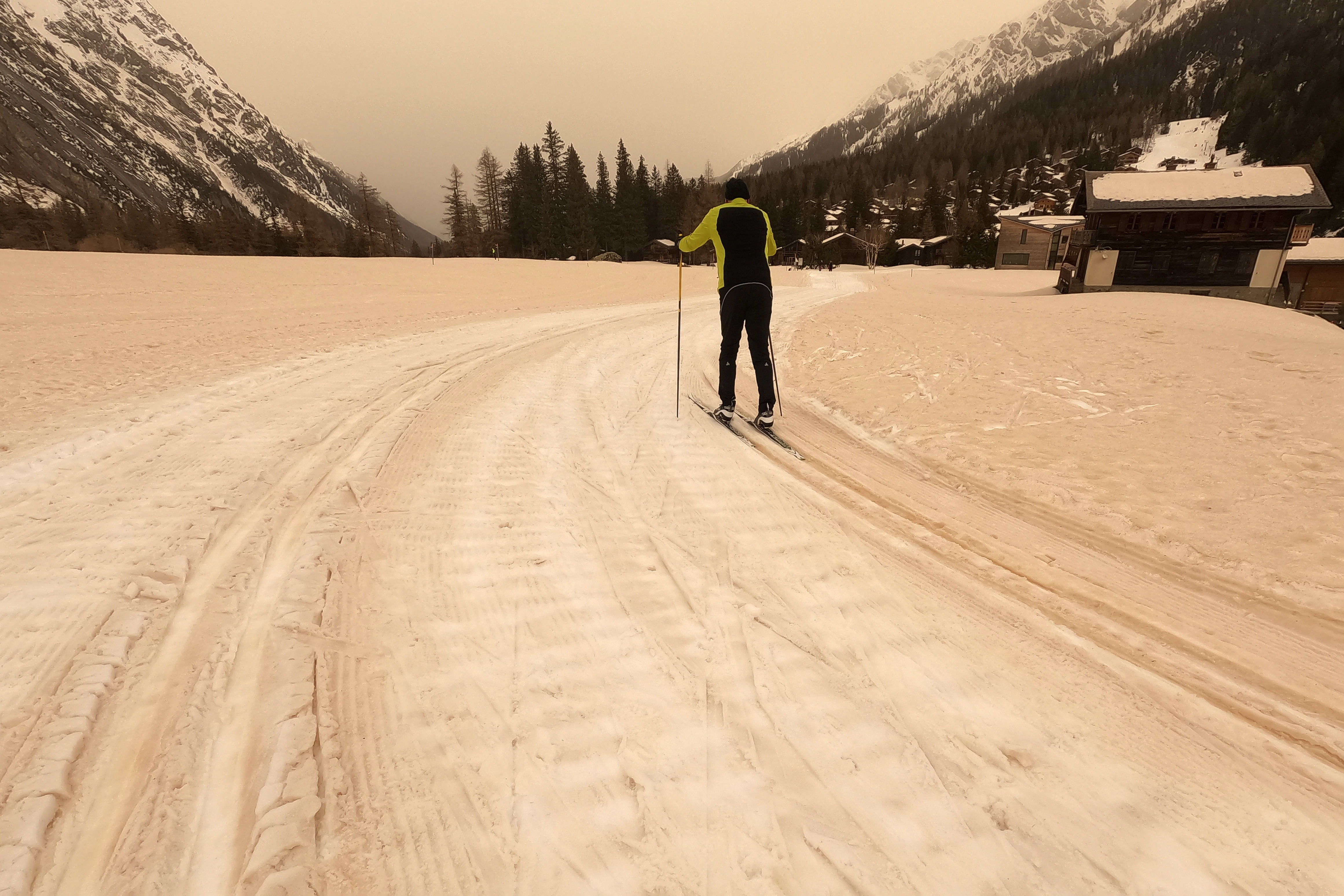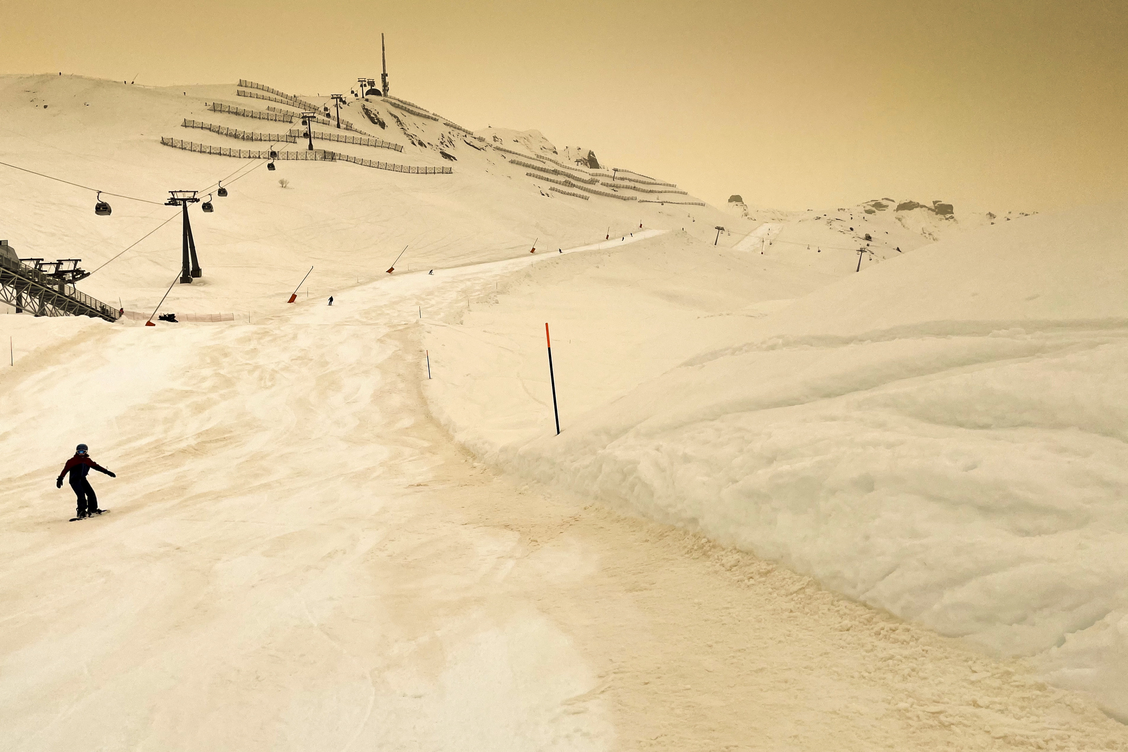 Absurd seeing a sand cloud coming all the way from Sahara and up into the mountains with the föhn wind. Such surreal light pic.twitter.com/rOFRdBFuDE