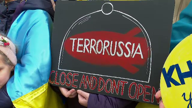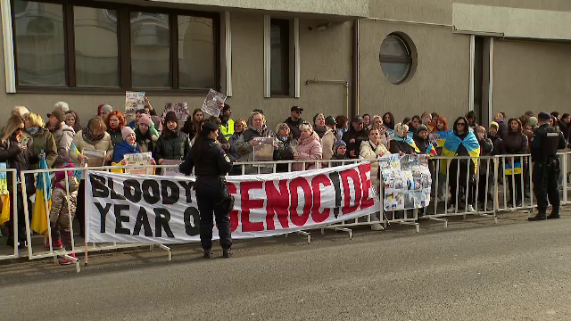 Peste o mie de refugiați ucraineni s-au adunat în fața Consulatului Rusiei din Constanța, la un an de la începutul invaziei rusești în Ucraina. Cu pancarte, steaguri și desene sugestive, oamenii au intonat cântece patriotice.