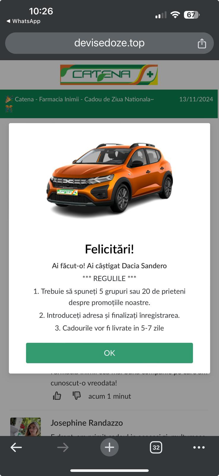 O nouă tentativă de scam în România. E folosită imaginea unei companii farmaceutice. "Ai făcut-o! Ai câștigat Dacia Sandero"