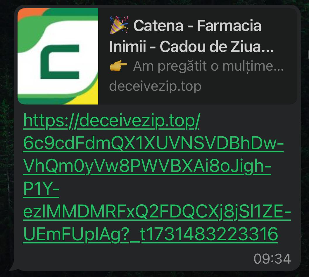 „Verifiсați mereu denumirea site-ului înaintе dе a aссesa oriсe link! Unele site-uri сlonă сopiază identitatea vizuală a brandurilor сunosсute, spre exemplu Catena - Farmacia Inimii, pentru a vă înșеla.
