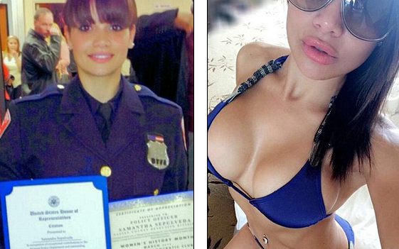 Samantha Sepulveda este ofiter de politie in Long Island, potrivit site-ului guvernului si castiga 143.000 de dolari pe an. Politista isi completeaza veniturile lucrand ca model de lenjerie intima atunci can programul ii permite, relateaza New York Post.