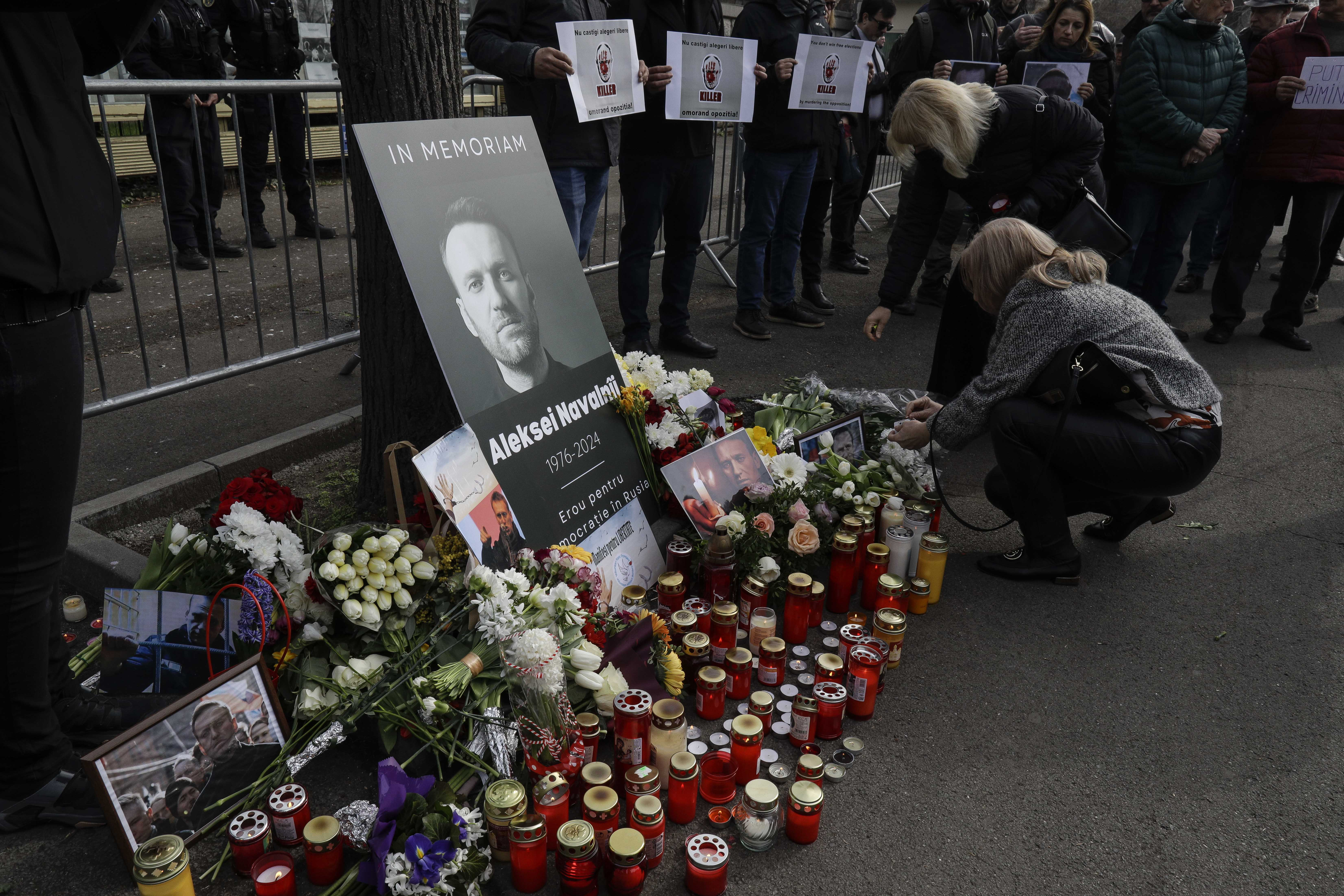 Zeci de oameni au adus flori, lumânări, şi pancarte cu imaginea disidentului, dar şi pancarte cu mesajul „Killer” (ucigaş) adresat lui Vladimir Putin.