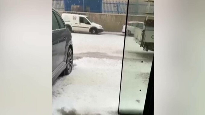 Oraș locuit de români în Spania, bătut de grindină. A acoperit complet străzile și trotuarele