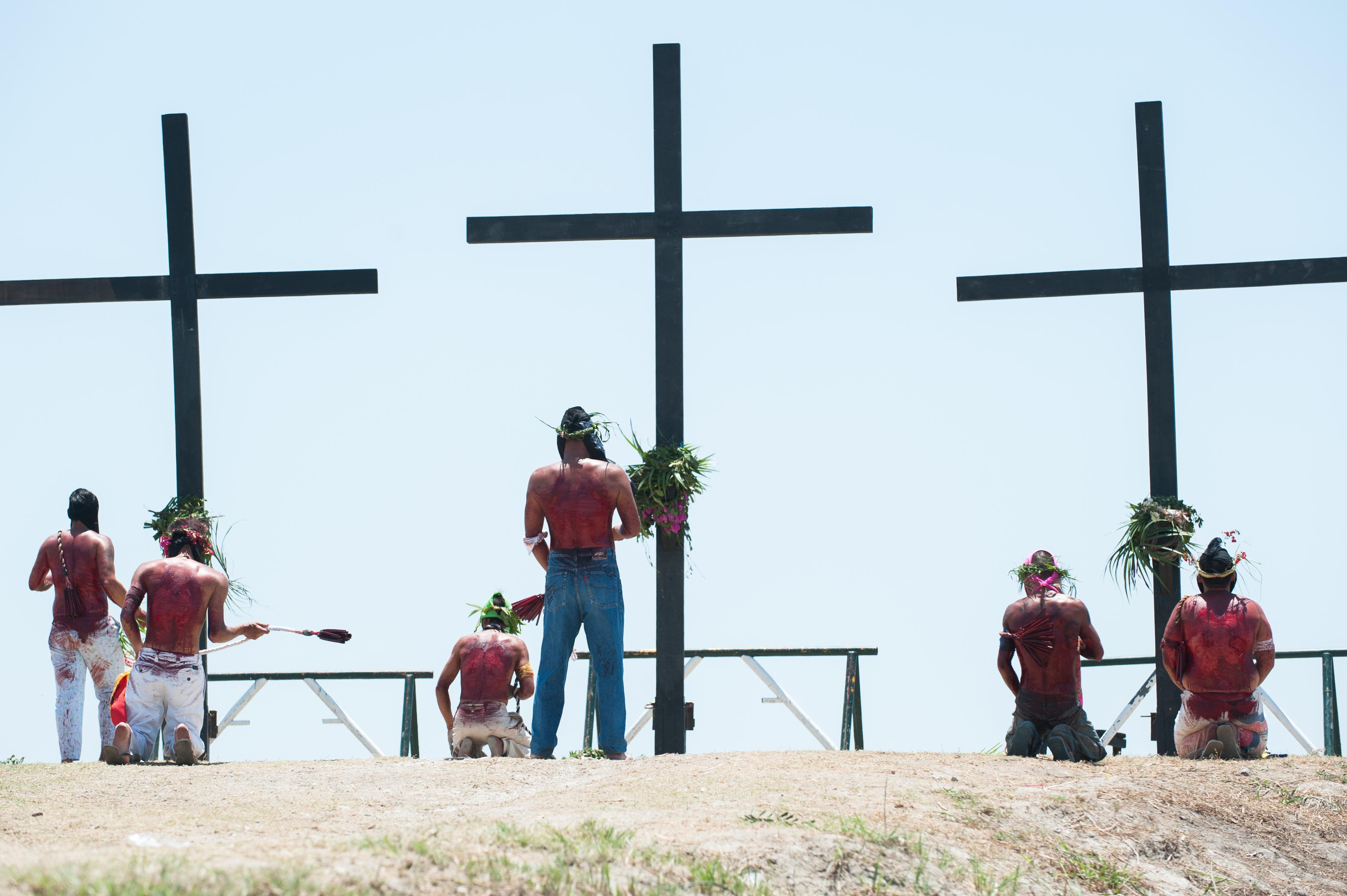 Înainte să fie răstigniți pe un deal, bărbații reproduc „Drumul Crucii”, purtând o coroană de spini pe cap și cărând o cruce grea de lemn în spate pe o distanță de un kilometru.