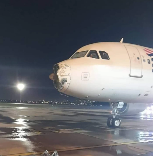 Avión de LATAM aterrizó en Asunción, con daños en parabrisas, radome (ubicado en la nariz) y un motor, según información publicada por distintos medios (no oficial).