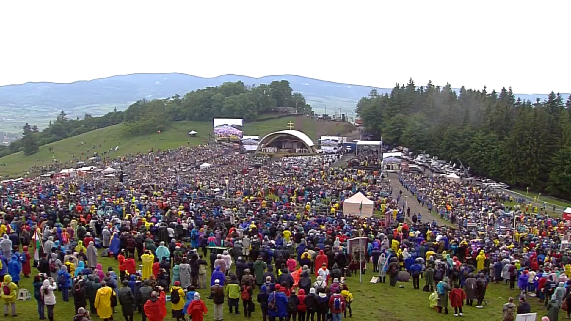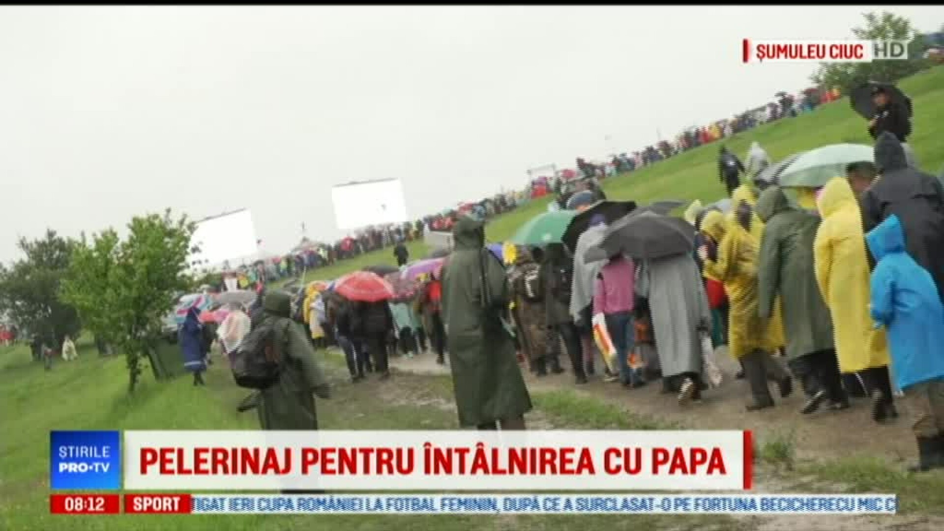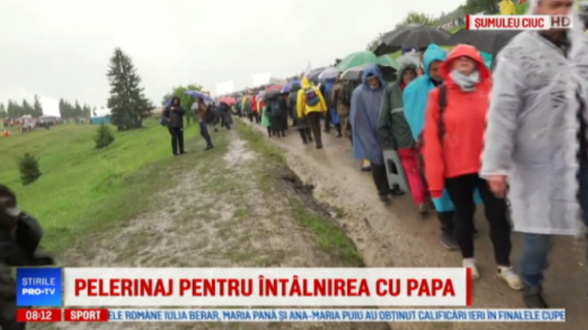 ora 8:20 Mii de persoane se îndreaptă, pe o ploaie torenţială, spre Şumuleu Ciuc, locul unde Papa Francisc va oficia Liturghia Pontificală în a doua zi a vizitei sale apostolice în România şi unde, în fiecare an, o mulţime impresionantă participă la cel mai mare pelerinaj catolic din Europa Centrală şi de Est.