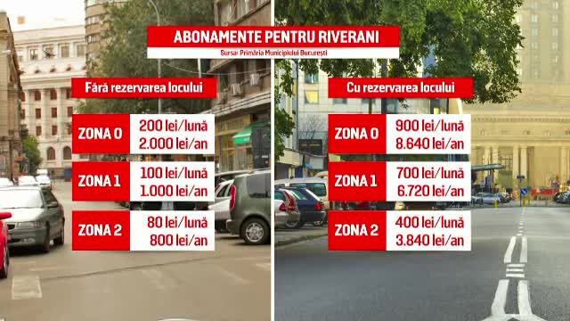 Abonamentele sunt valabile doar pe timp de zi, în intervalul 7 dimineaţa - 11 seara, iar cel din zona zero cea mai scumpă ajunge la aproape 10 mii de lei pe an. Prețurile diferă în funcție de zonă, dar și de perioadă, pentru că, pe lângă abonamentele zilnice, există și abonamente săptămânale, lunare, semestriale, sau anuale. Noaptea, parcarea va fi gratuită.