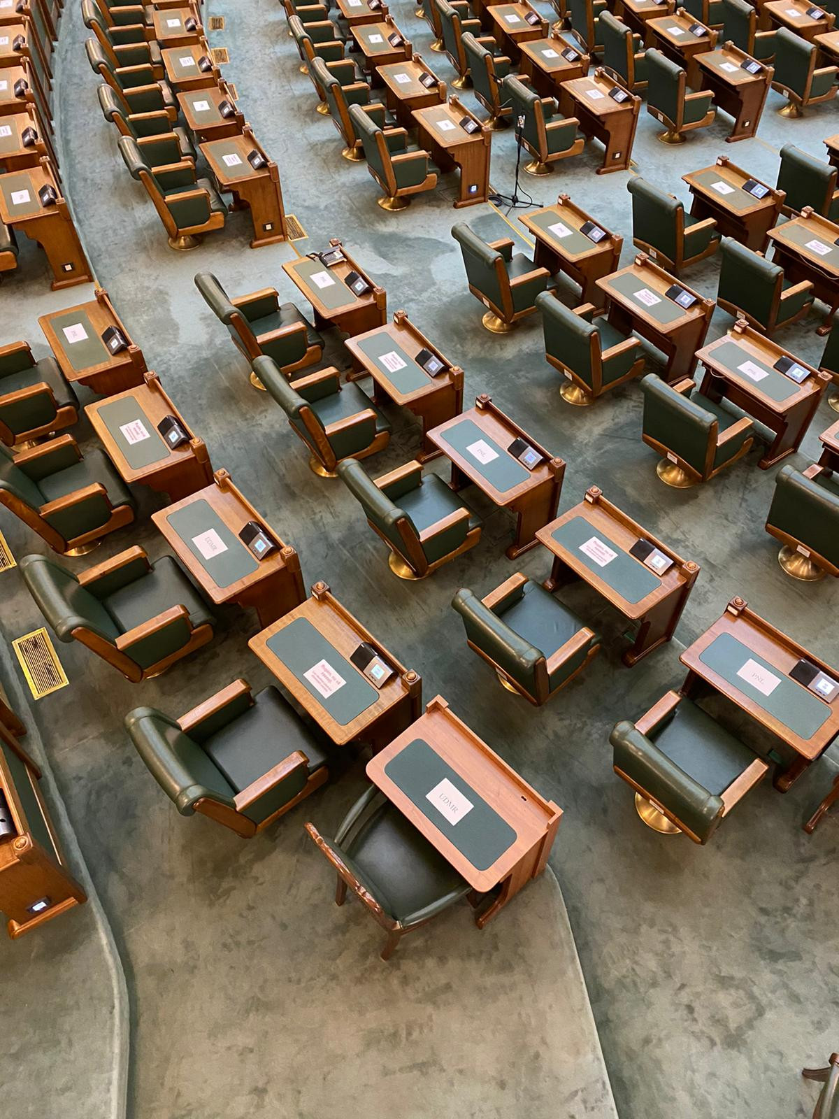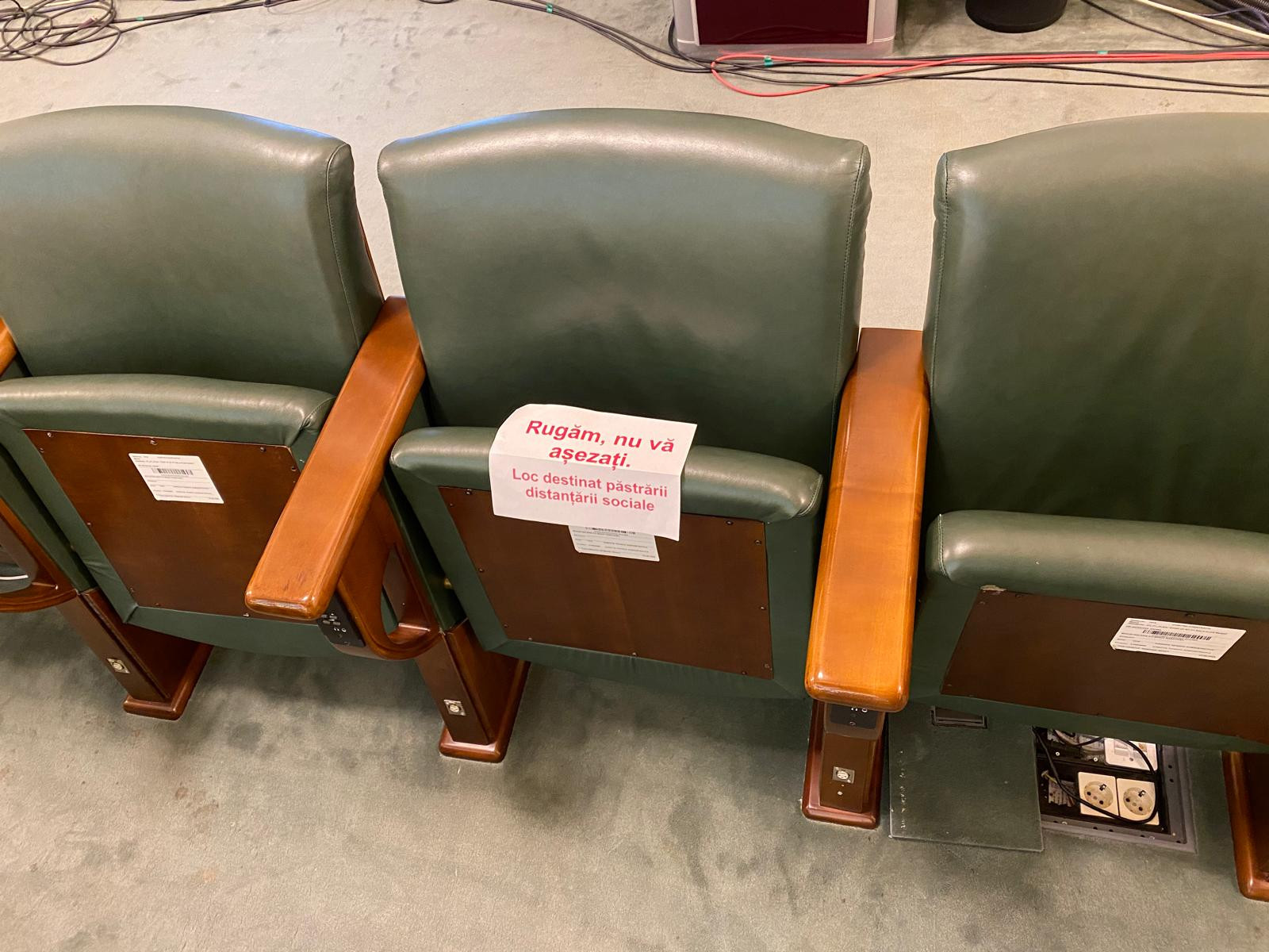 La Senat, noii aleși au avut câte un scaun liber între ei, pentru a respecta astfel distanța fizică. Pe pupitre, au fost puse hârtii prin care senatorii sunt avertizați asupra acestui lucru.