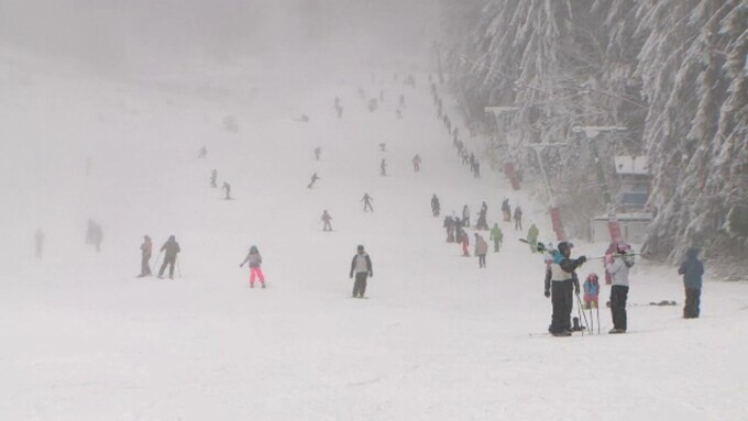 În stațiunea Durău, din județul Neamț, zăpada este produsă de o instalație care funcționează chiar și la temperaturi pozitive. Aici se schiază deja de 10 zile.