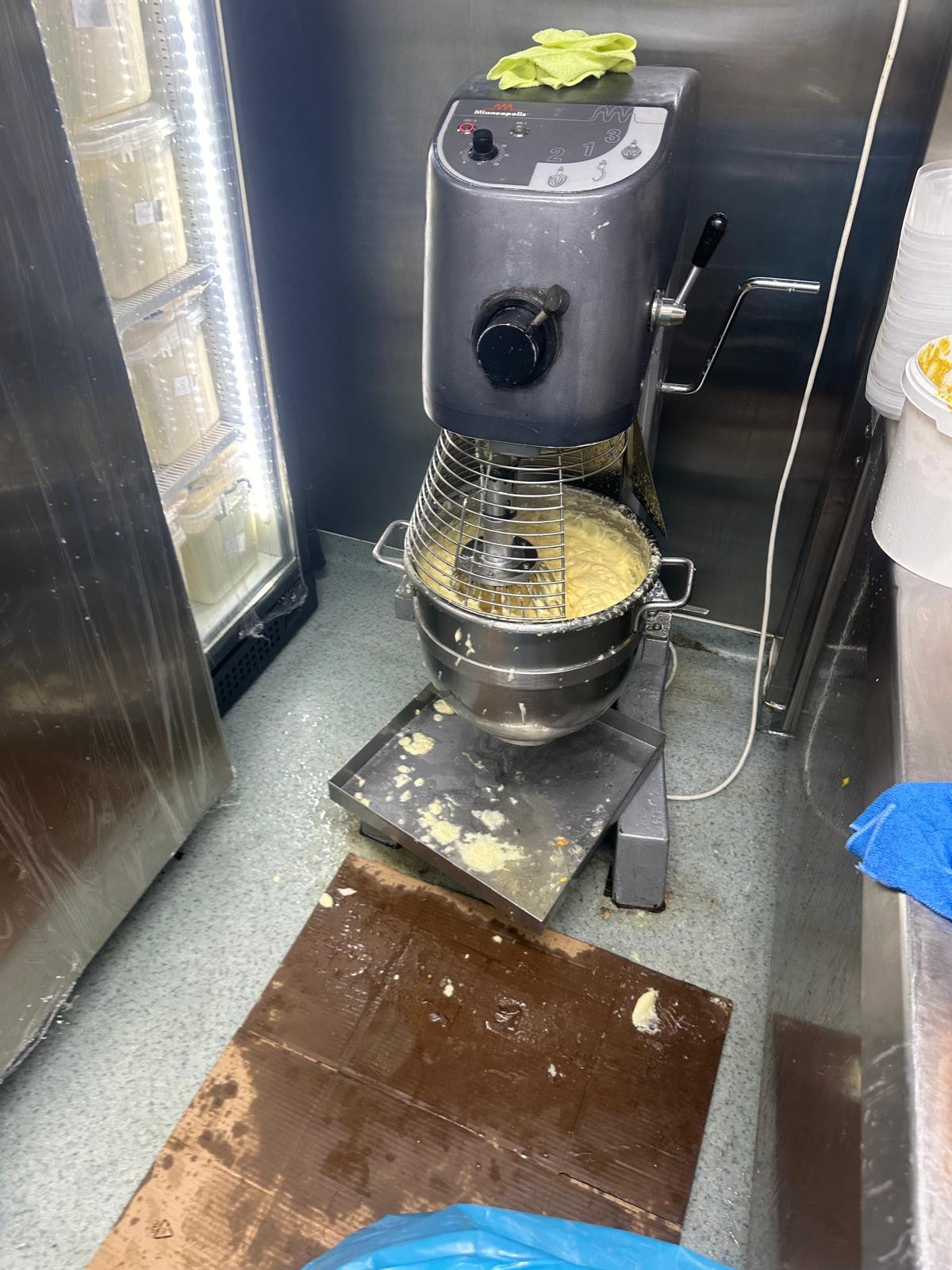 - praf şi grăsime în strat consistent la corpurile de gătit, la nivelul tubulaturii amplasate deasupra hotelor şi a corpurilor de gătit, paviment depreciat;