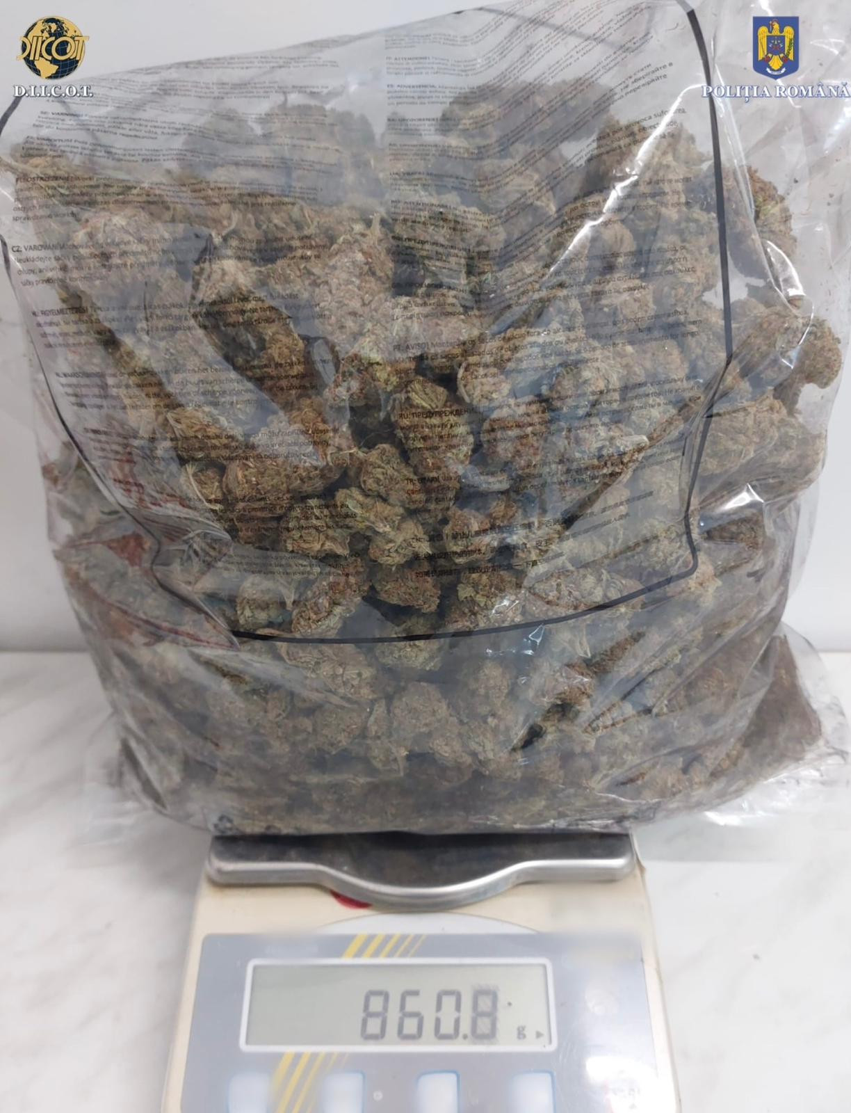 În urma percheziţiilor, au fost ridicate 1,22 kilograme de canabis, cântare electronice de mare precizie, grindere, laptopuri, 23.470 de lei şi 1.120 de euro.