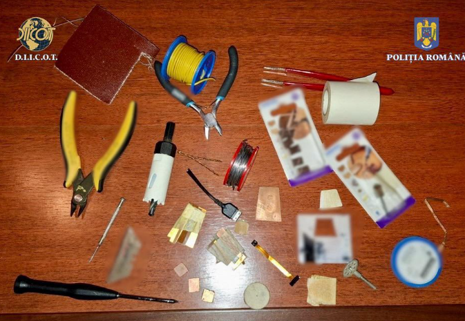 În urma percheziţiilor efectuate la locuinţele persoanelor cercetate, au fost descoperite şi ridicate un laptop, telefoane mobile, medii de stocare a datelor, carduri bancare şi nebancare, înscrisuri, precum şi alte mijloace de probă.