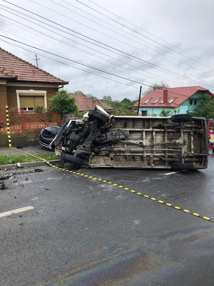 În accident au fost implicate două autovehicule, dintre care unul s-a răsturnat, informează Agerpres.
