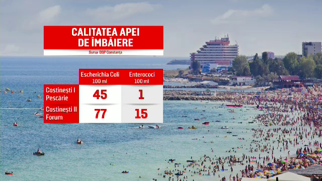 Analizele Direcției de Sănătate Publică au descoperit bacterii și microbi periculoși, în mare. Luna trecută, aproape că a fost atins nivelul maxim admis de E.Coli în apă. De vină sunt și turiștii care lasă pe plajă, grămezi de resturi, în timp ce unii folosesc nisipul pe post de toaletă. Toată mizeria ajunge apoi în mare.