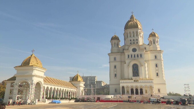 Corespondent Știrile PRO TV: „Duminică, porțile catedralei se vor deschide la ora 7, printre cele trei puncte foarte bine delimitate. Accesul se va face în zona principală – aici intră oficialitățile. O altă poartă de intrare este în zona paraclisului Catedralei Naționale, iar prin zona barierei vor fi grupurile din eparhiile din țară. Toate aceste grupuri, adică 8.000 de persoane, vor avea acces doar aici, pe esplanada din fața catedralei. În interior vor avea acces 2.500 de persoane cu invitații speciale.”
