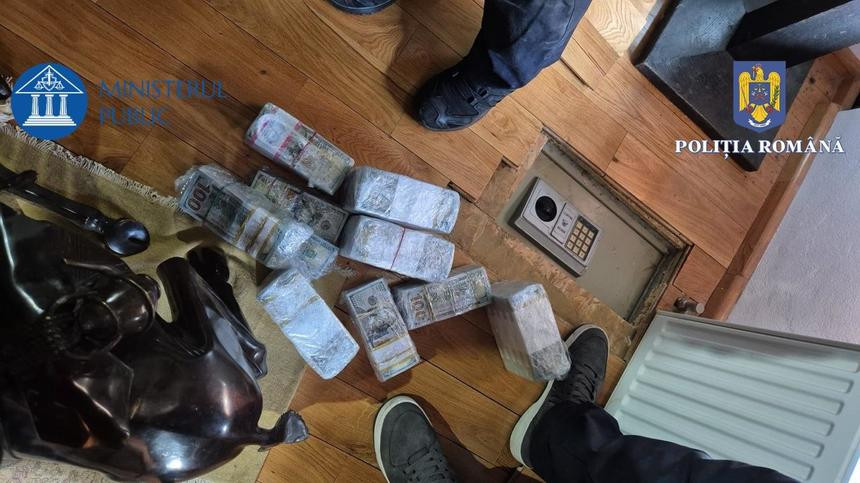 De asemenea, într-un seif ascuns sub podeaua casei, au fost găsite teancuri cu bani, în total peste un milion de euro.