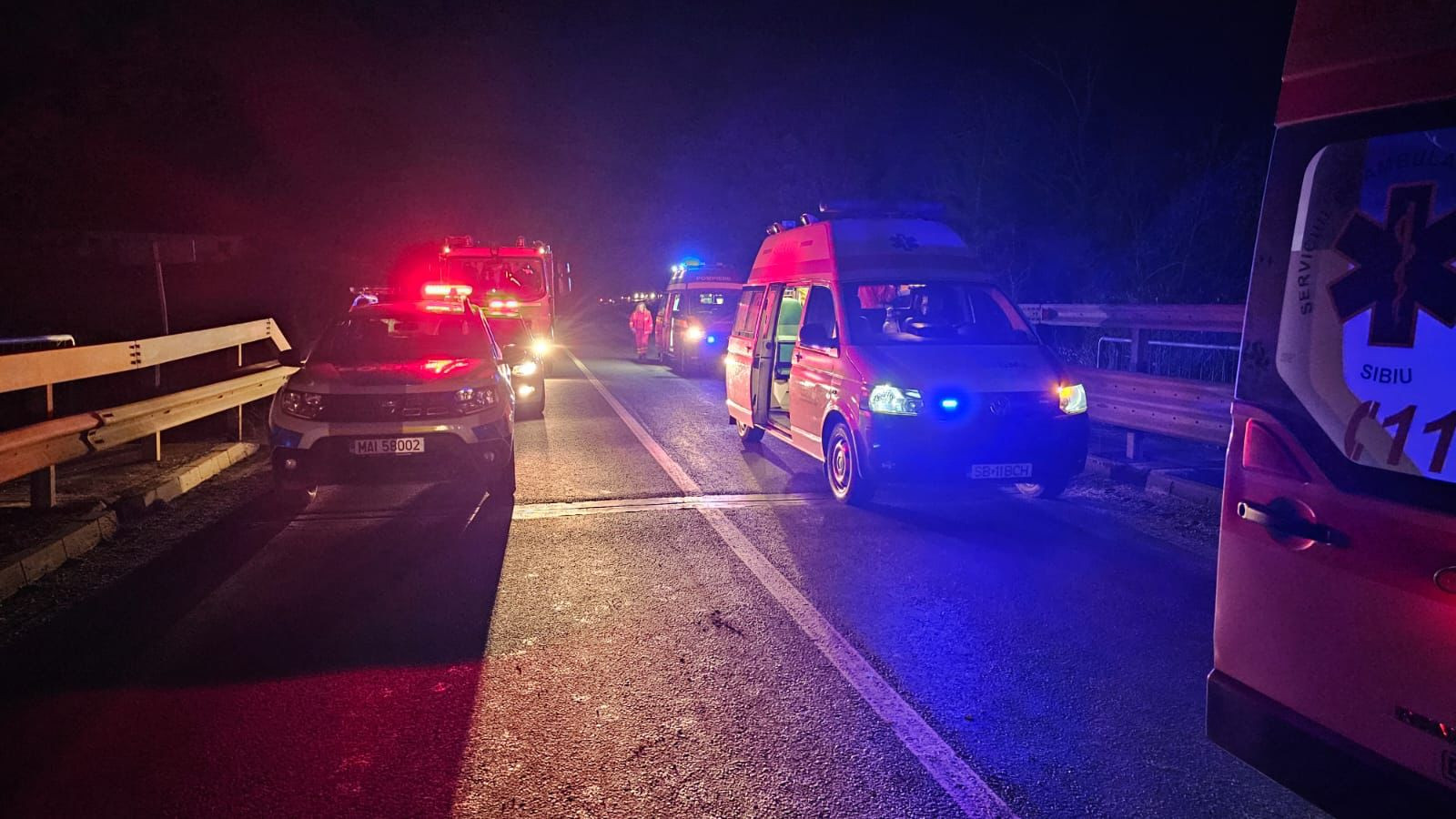 Echipele de intervenție ale Inspectoratului pentru Situații de Urgență (ISU) Sibiu se află în plină acțiune la locul unui accident rutier grav, petrecut pe DN 14 la ieșirea din municipiul Mediaș spre Brateiu.