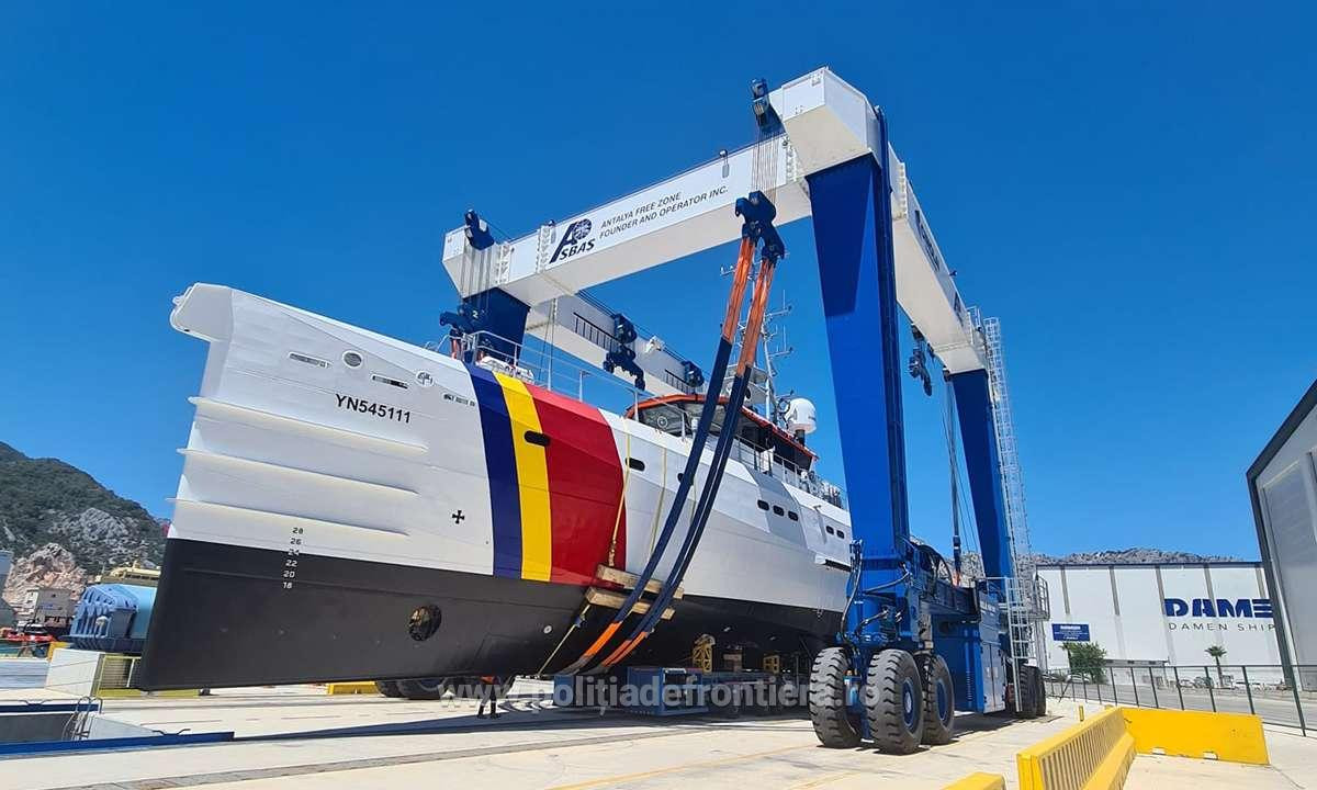 „În cursul zilei de ieri, la sediul şantierului Damen Shipyards din Antalya, în prezența unei delegaţii a Poliţiei de Frontieră Române și a managerului de proiect, a avut loc lansarea la apă a primei nave maritime de patrulare din completul de două nave ce vor intra în dotarea Poliţiei de Frontieră Române, în vederea creșterii capabilităţilor de intervenţie operativă la frontiera maritimă externă a Uniunii Europene”, transmite Poliția de Frontieră într-un comunicat.