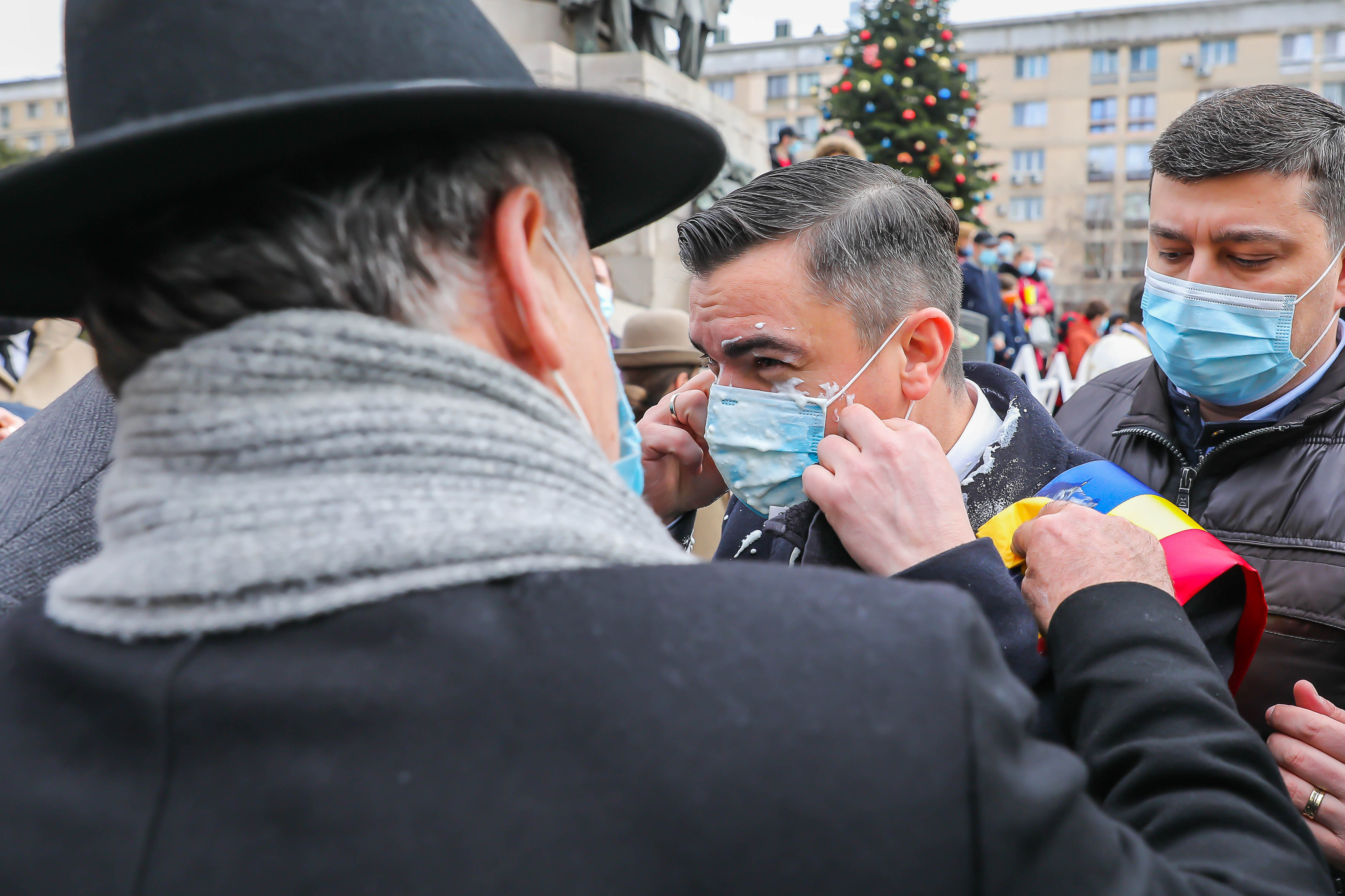 Primarul Chirica, stropit de un protestatar cu iaurt la manifestările din Piaţa Unirii