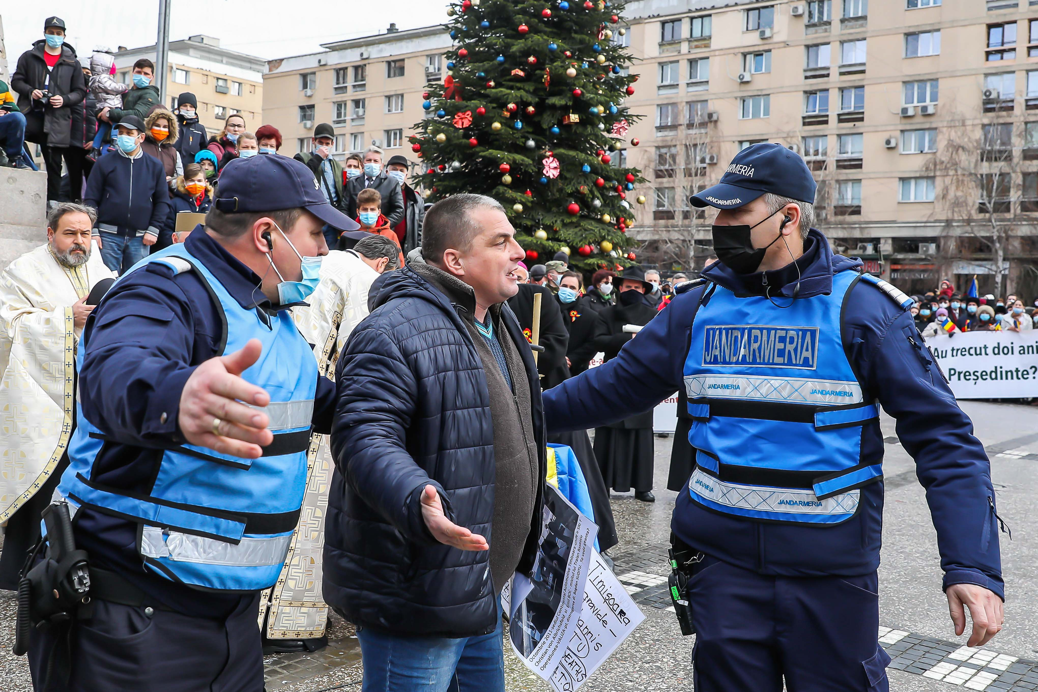 Chirica s-a retras în Hotelul Traian pentru a se spăla pe faţă, dar şi pentru a-şi curăţa haina. În acelaşi timp, protestatarul a fost ridicat de forţele de ordine pentru a fi legitimat.