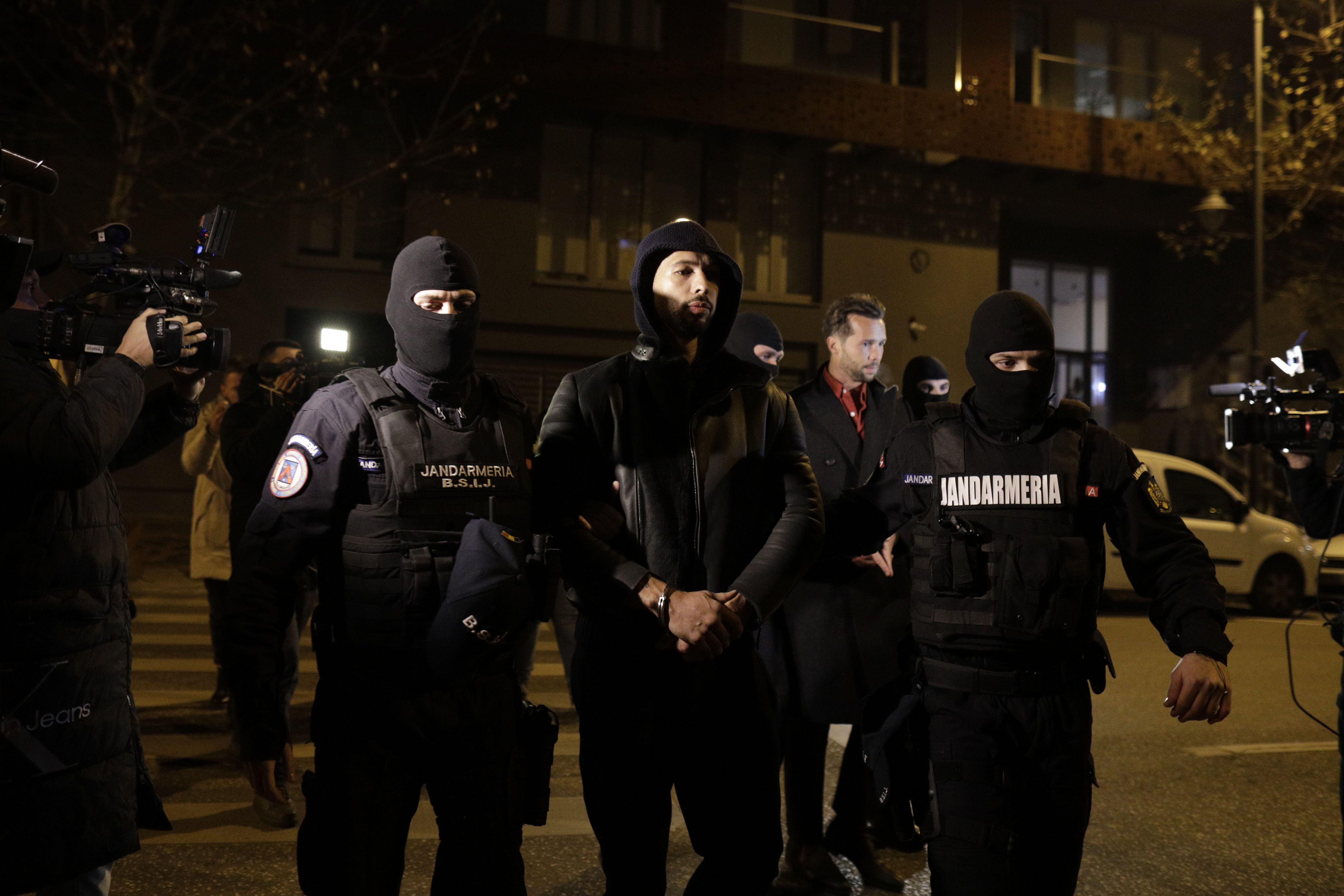 După mai bine de trei ore de audieri, frații Andrew și Tristan Tate au ieșit cu cătușele puse din sediul DIICOT și au fost duși în arest pentru 24 de ore. Cei doi sunt anchetați de procurori pentru constituirea unui grup infracțional organizat, trafic de persoane și viol. În același dosar au fost reținute și două românce, care se presupune că au lucrat cu cei doi.