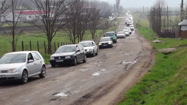 Peste 500 de maşini au pornit spre Botoşani, pe drumurile pline de cratere pe care şoferii sunt nevoiţi să circule chiar şi cu 15-20 kilometri pe oră.