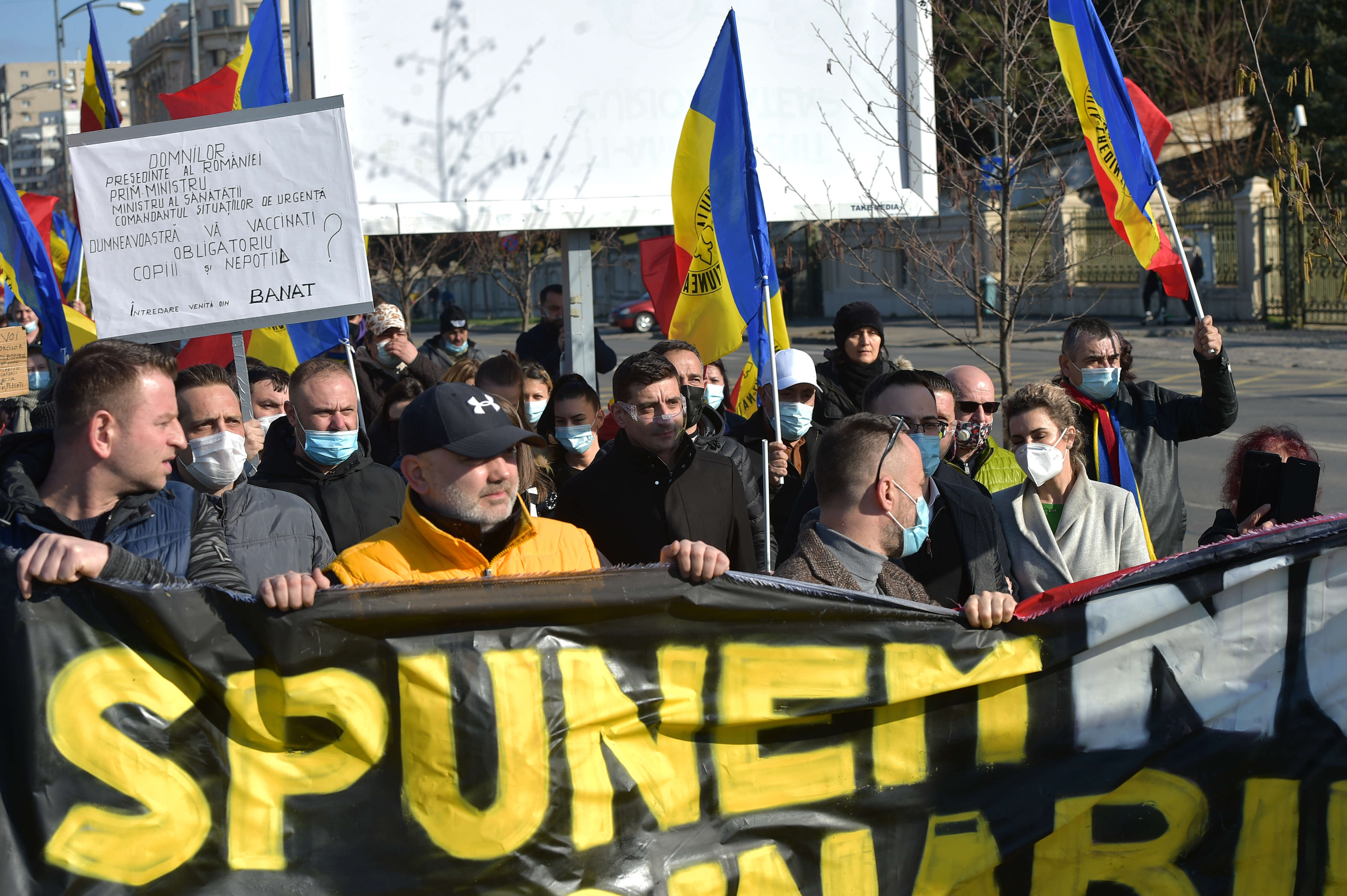 Copreşedintele AUR George Simion a declarat că a venit la această manifestaţie ca să protesteze "pentru libertate". "Nimeni nu întreabă românii dacă sunt de acord cu starea de alertă, de urgenţă, nimeni nu întreabă românii dacă sunt de acord să fie impusă obligativitatea vaccinării. Noi nu suntem împotriva vaccinării, suntem pentru liberă alegere (...) am venit ca român simplu, pentru a lupta cu orice formă de restricţie care se încearcă să fie introdusă. Manifestaţia de azi e organizată de Alianţa Familiilor pentru a se opune obligativităţii vaccinării în general. Este o lege depusă în 2017 în Parlamentul României, care a intrat pe rolul Camerei Deputaţilor, noi am depus amendamente la ea şi vom vota împotriva ei", a declarat George Simion.
