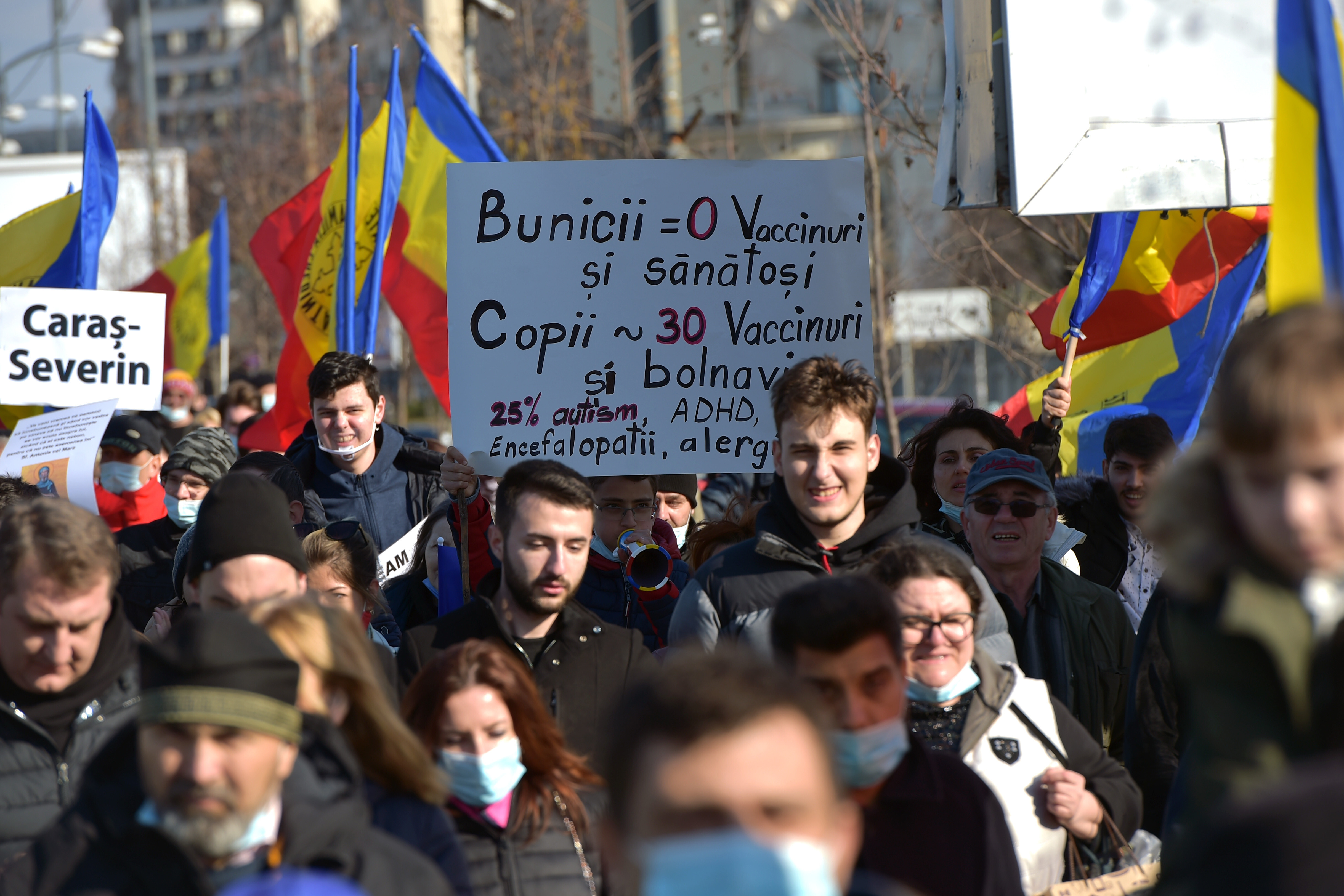 Protestatarii au scandat printre altele: "Libertate!", "Fără vaccinare!", "Obligativitatea distruge libertatea!", "Jos masca!" şi au avut pancarte cu mesaje precum: "Dacă statul impune, libertatea apune", "Vaccinarea obligatorie=Genocid", Dacă există risc, trebuie să existe alegere, libertate!".