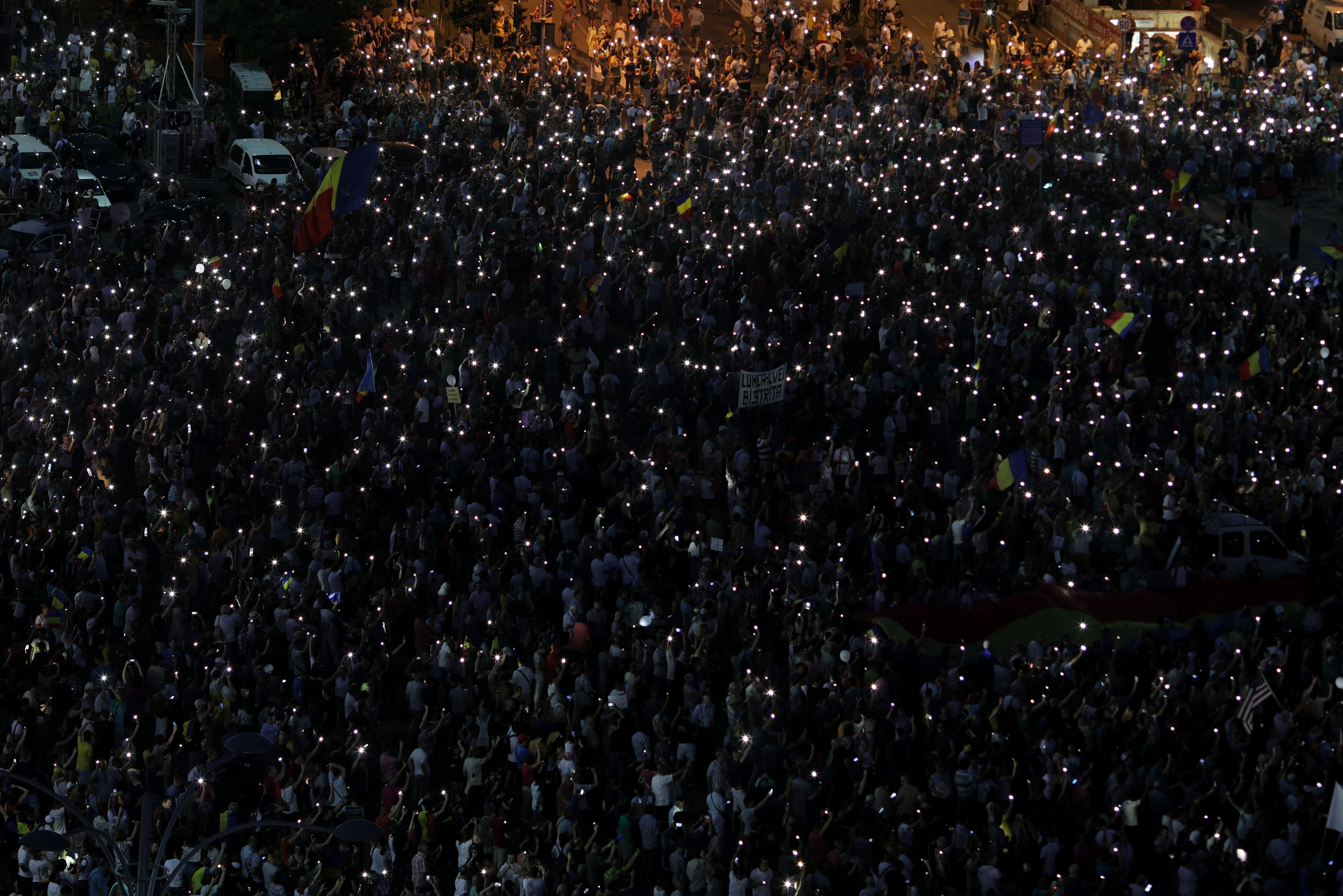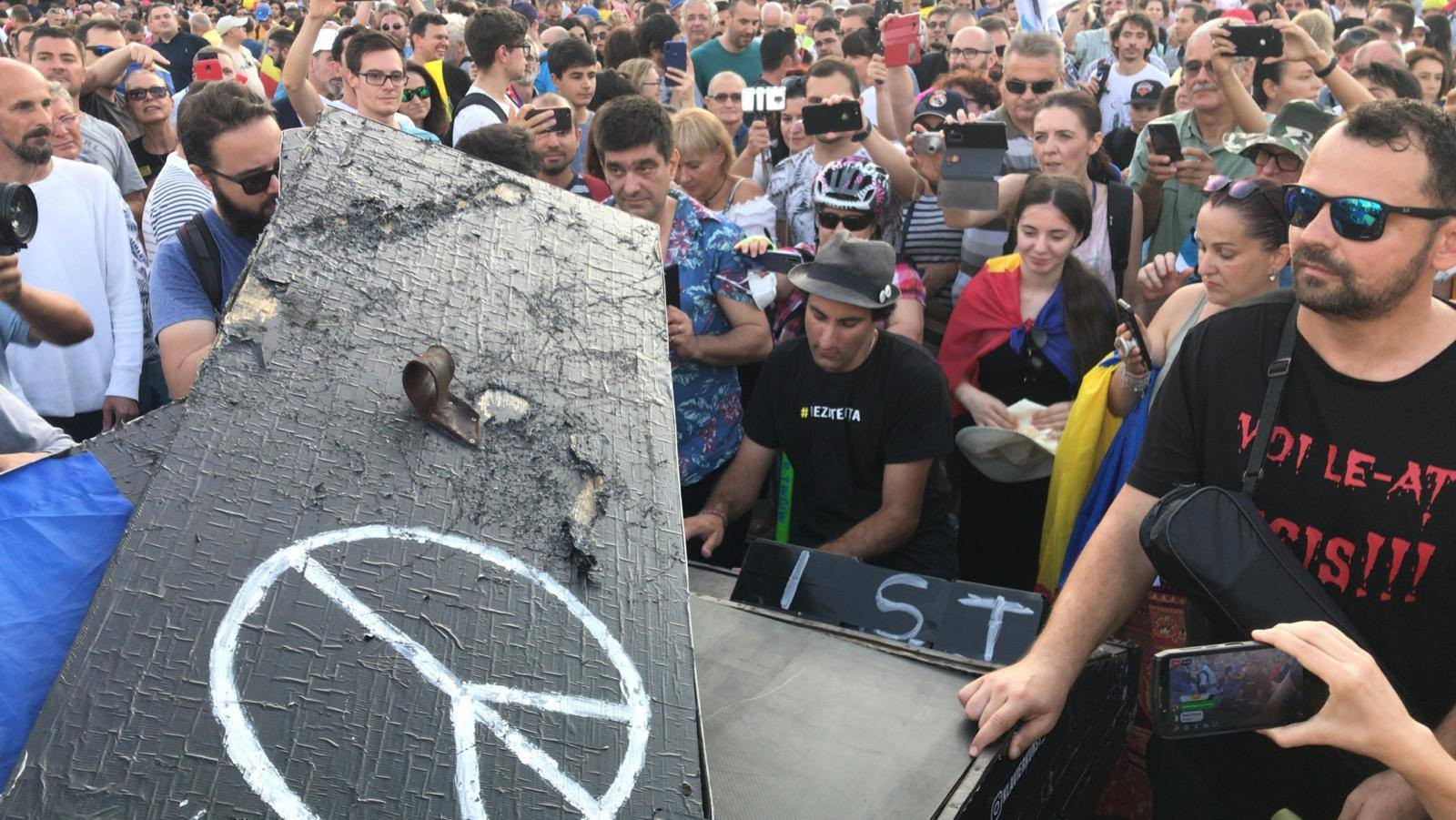 “Fără penali în funcţii publice”, “Corupţia ucide!”, “România nu e a voastră! Plecaţi la căpşuni sau la puşcărie” – au fost doar câteva dintre mesajele afişate în piaţă.