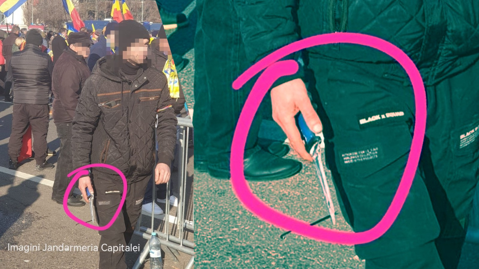Ulterior, Jandarmeria Capitalei a anunțat faptul că a mai fost identificat un alt bărbat care avea asupra sa un cuțit în timp ce participa la protestul din Piața Victoriei. Bărbatul a folosit cuțitul pentru a tăia legăturile dintre panourile metalice montate de jandarmi, încurajând astfel forțarea dispozitivului de ordine publică și blocarea carosabilului, informează Jandarmeria.