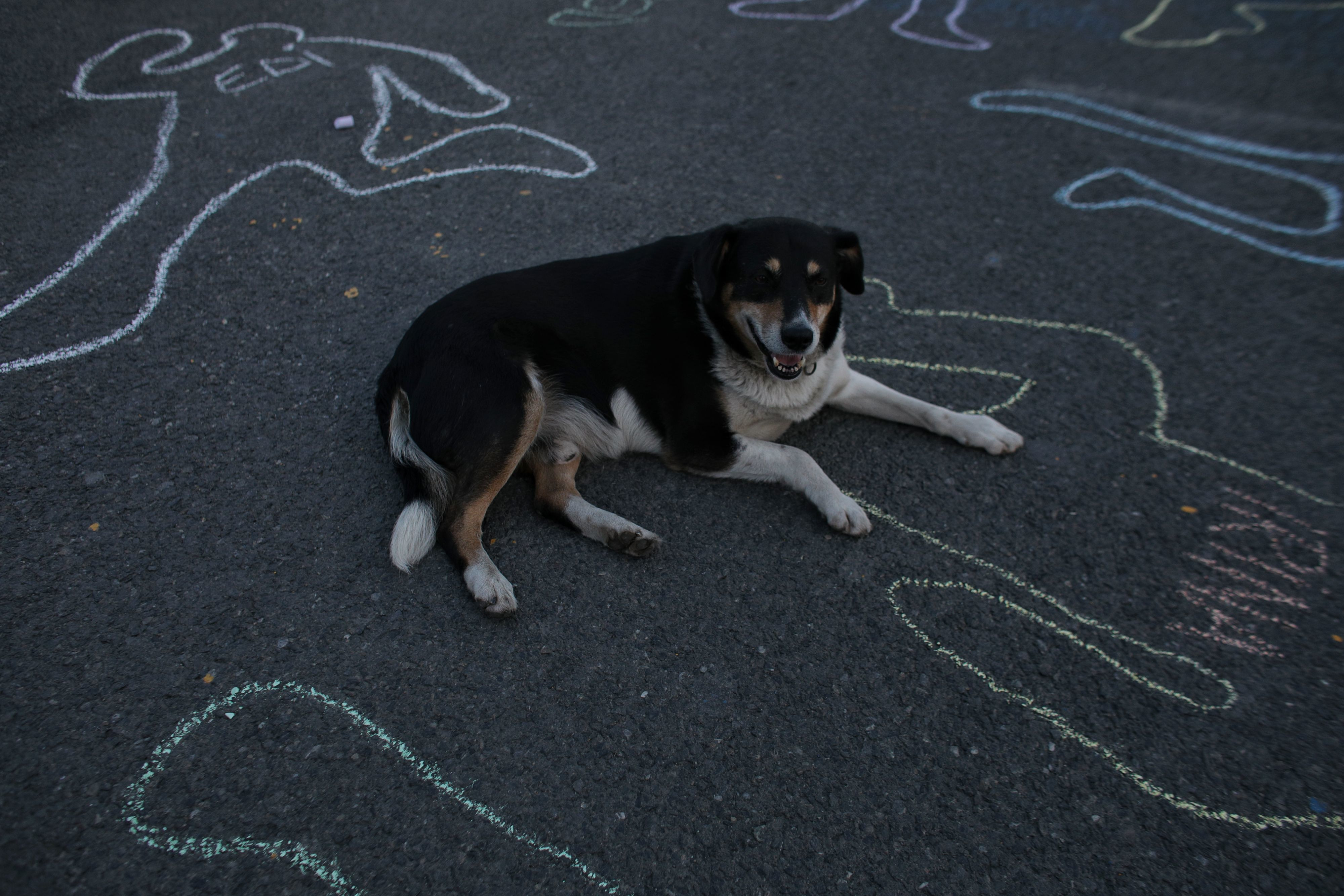 Câteva zeci de persoane au participat miercuri seara la un protest inedit în Piaţa Victoriei, desenând pe asfalt siluete umane ca la cercetările criminalistice.