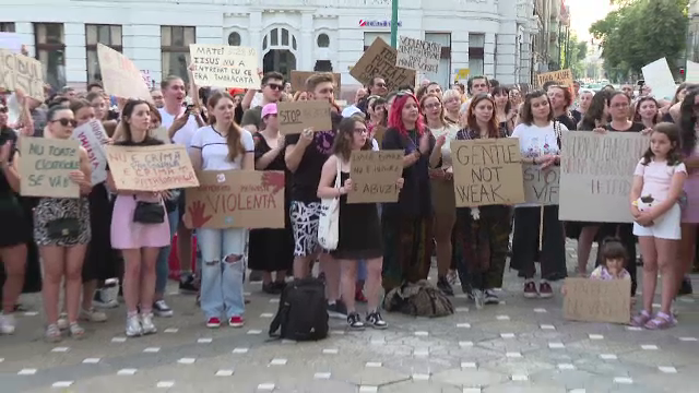 La fel ca în alte orașe, revolta oamenilor a plecat de la cazul Teodorei Marcu, tânăra însărcinată, împușcată mortal de fostul iubit, în urmă cu o săptămână, într-un complex rezidențial de lângă Capitală.